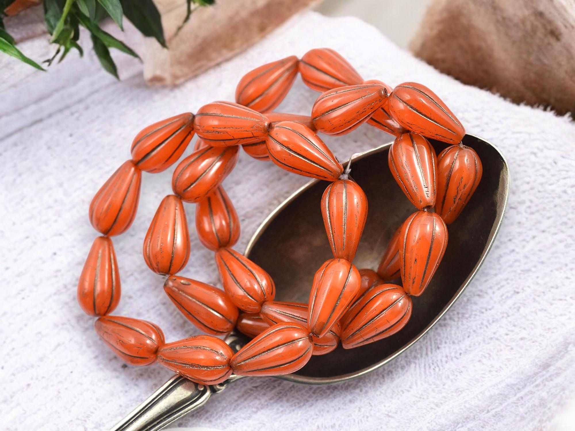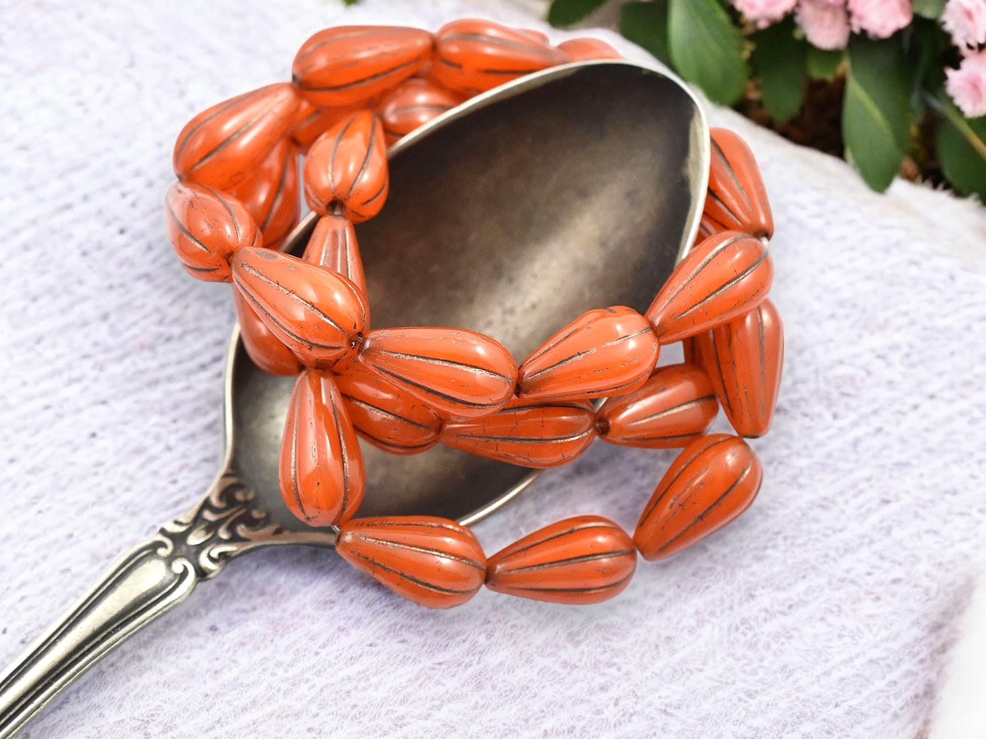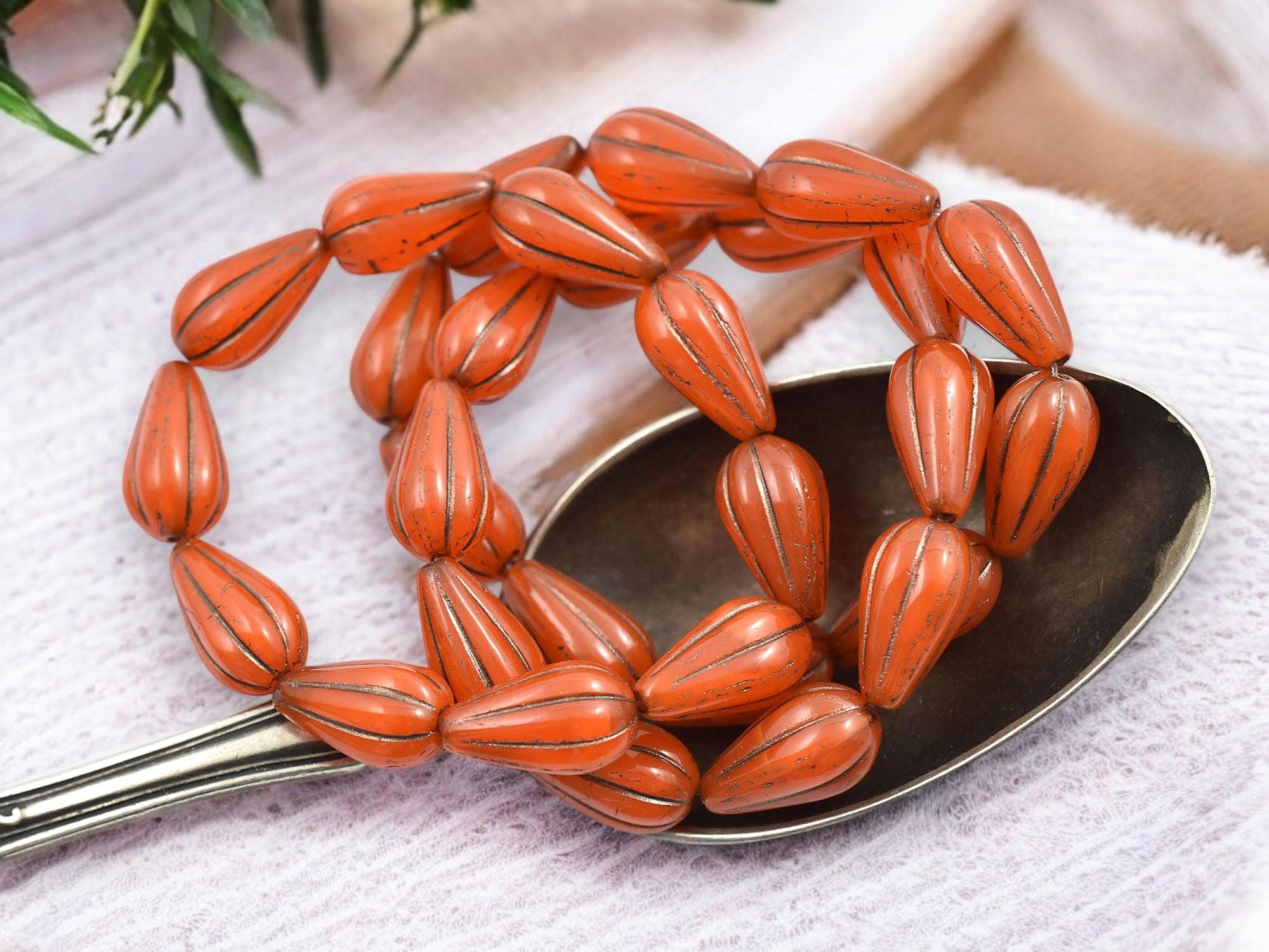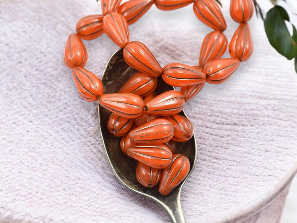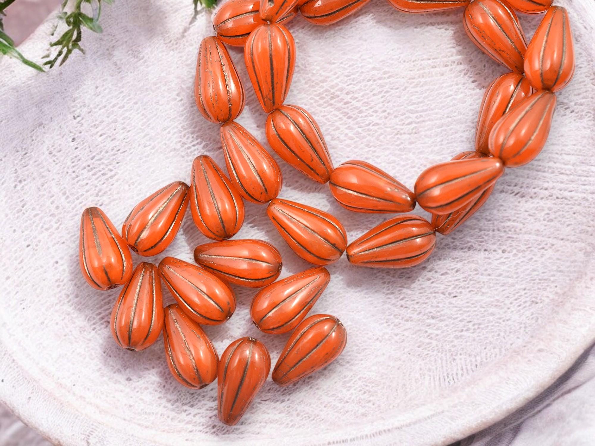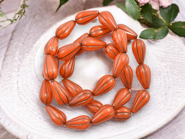 *10* 13x8mm Dark Bronze Washed Orange Opaline Melon Drop Beads