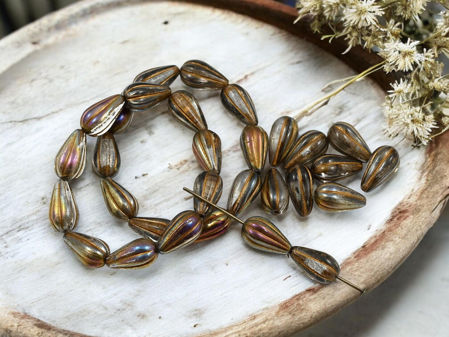 *10* 13x8mm Smokey Topaz Rainbow Luster Melon Drop Beads