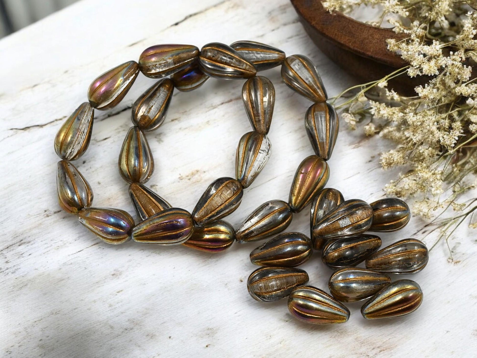 ♥ Type/Shape: Czech pressed glass melon teardrop beads