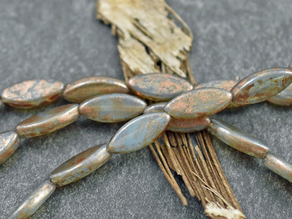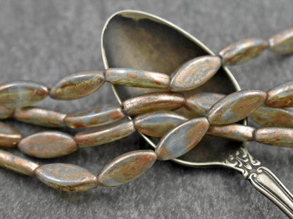 *8* 18x8mm Gold Washed Matte Aqua Spindle Beads