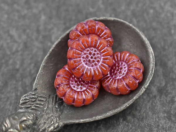 *12* 13mm Metallic Pink Washed Orange Opaline Sunflower Coin Beads