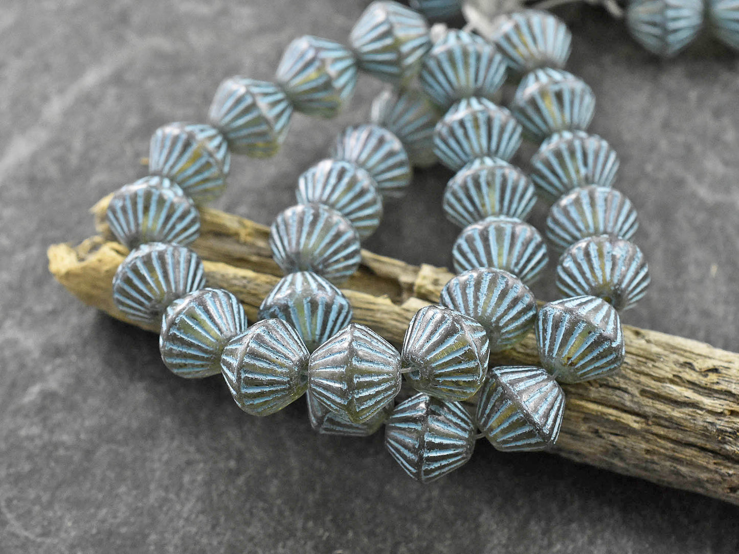 *15* 11mm Turquoise Washed Crystal Picasso Carved Bicone Beads