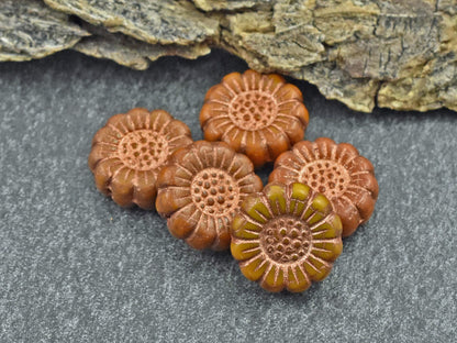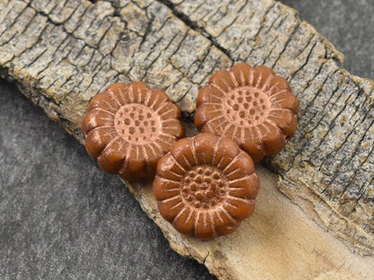 *12* 13mm Copper Washed Ochre Orange Sunflower Coin Beads