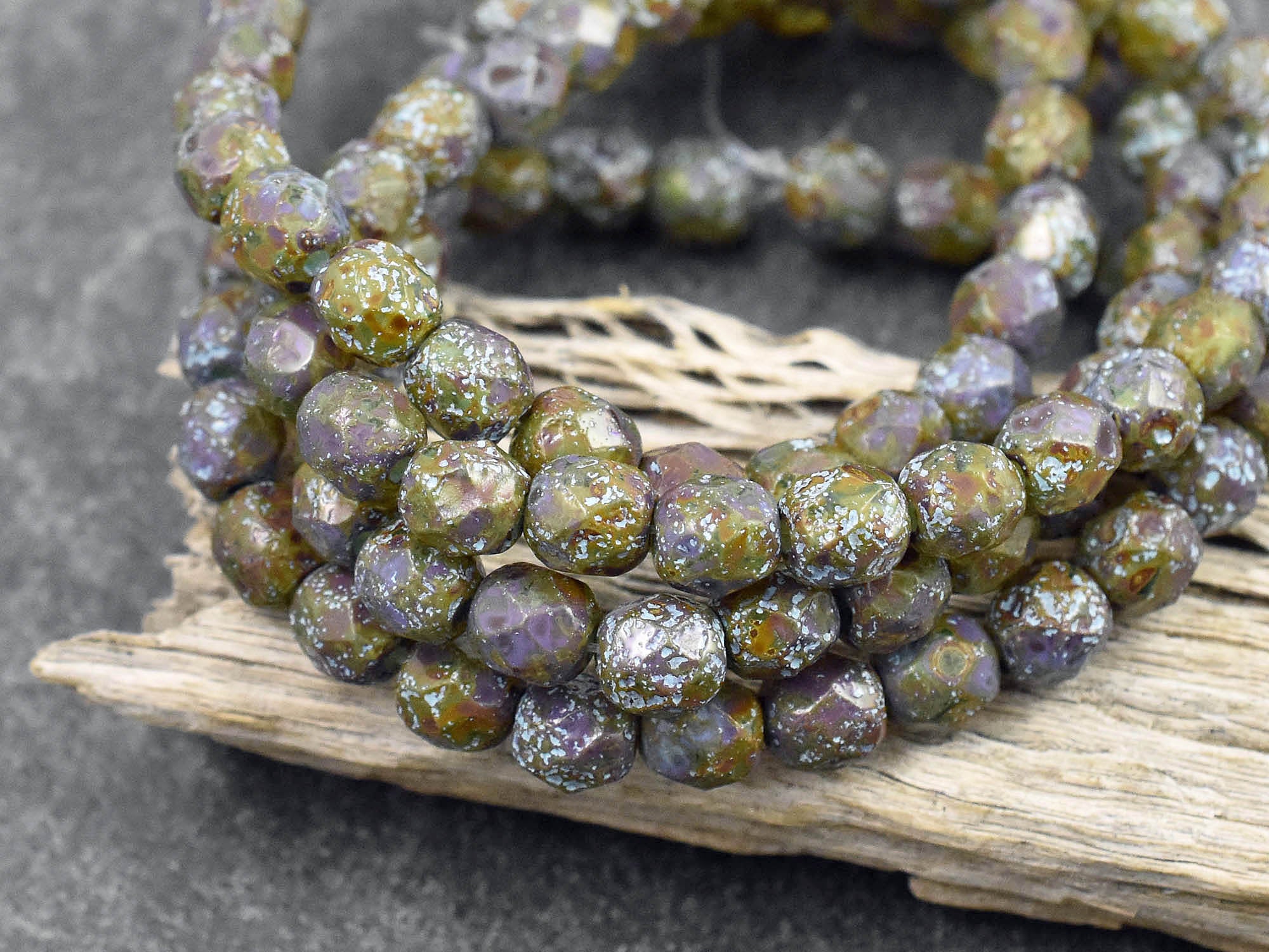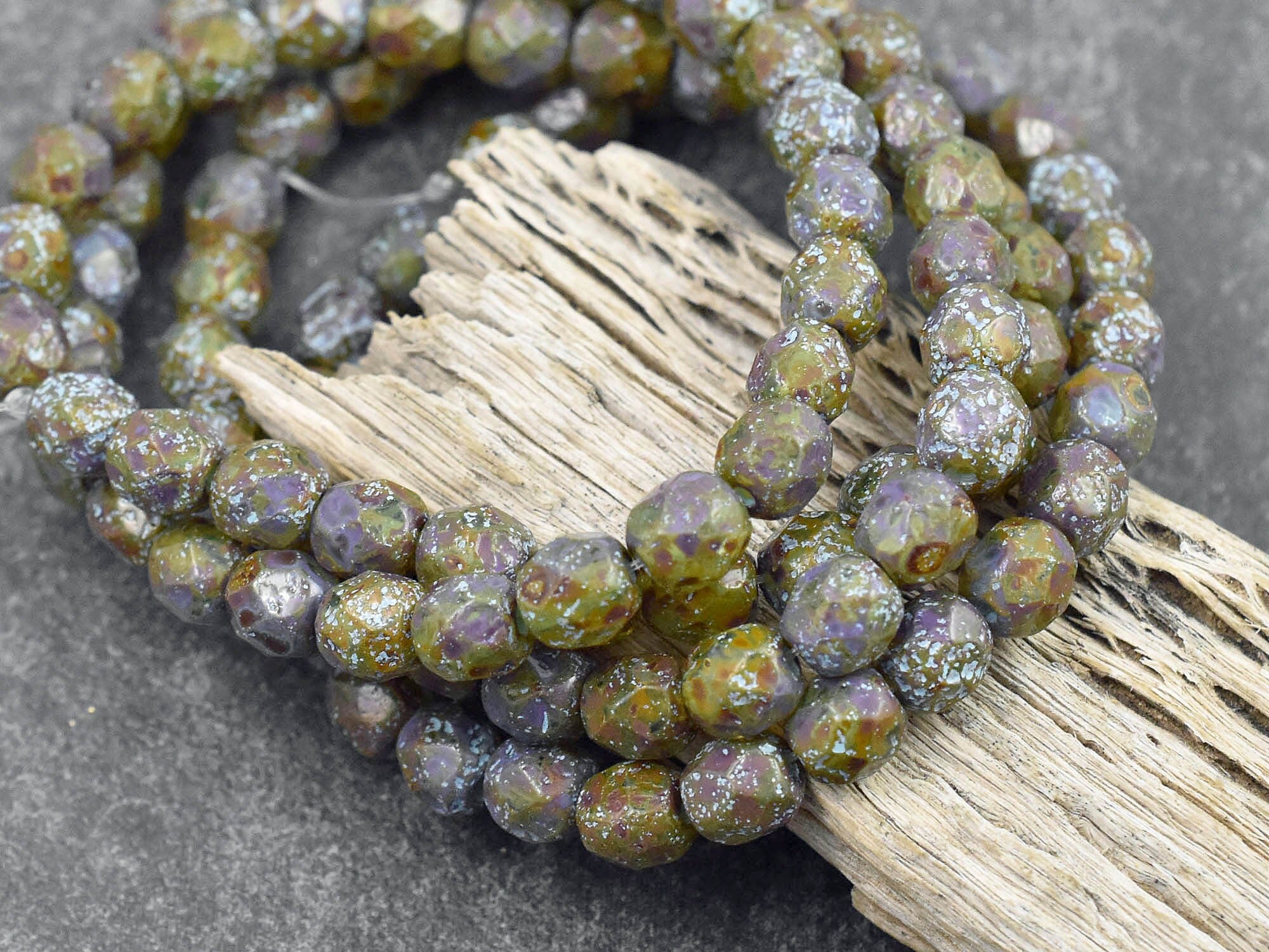 *25* 6mm Turquoise Washed Etched Sage Picasso Fire Polished Round Beads