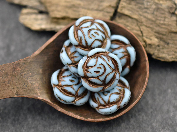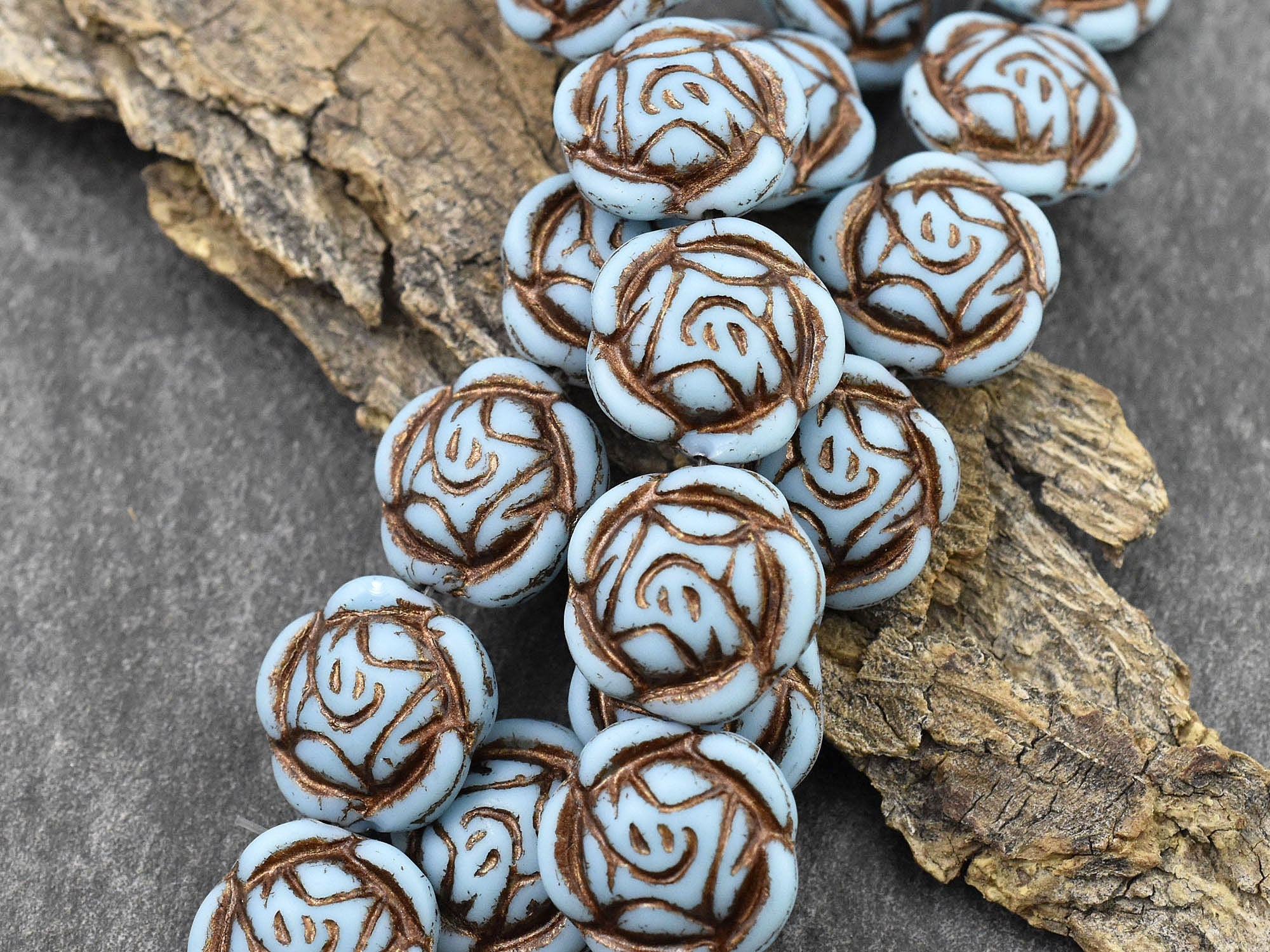 *6* 17mm Dark Bronze Washed Matte Blue Turquoise Rose Flower Coin Beads