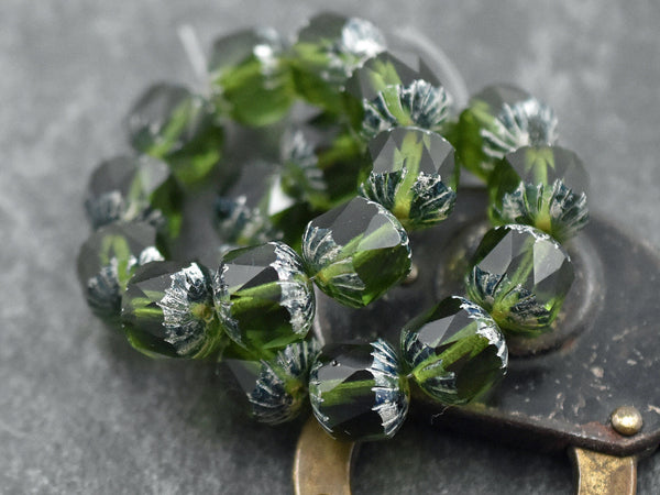 *10* 10mm Silver Picasso Washed Dark Tourmaline Center Cut Cruller Beads