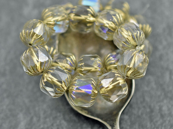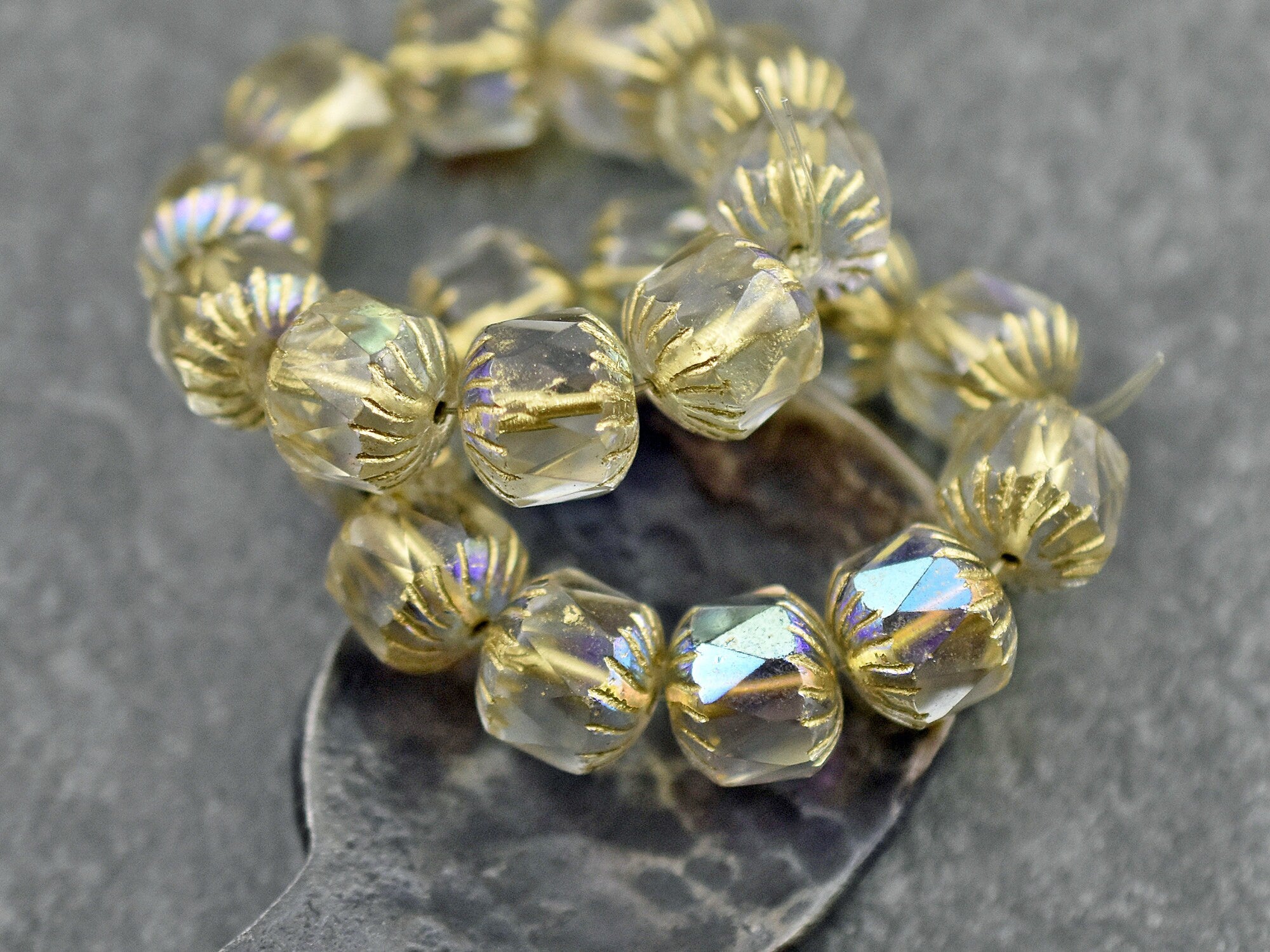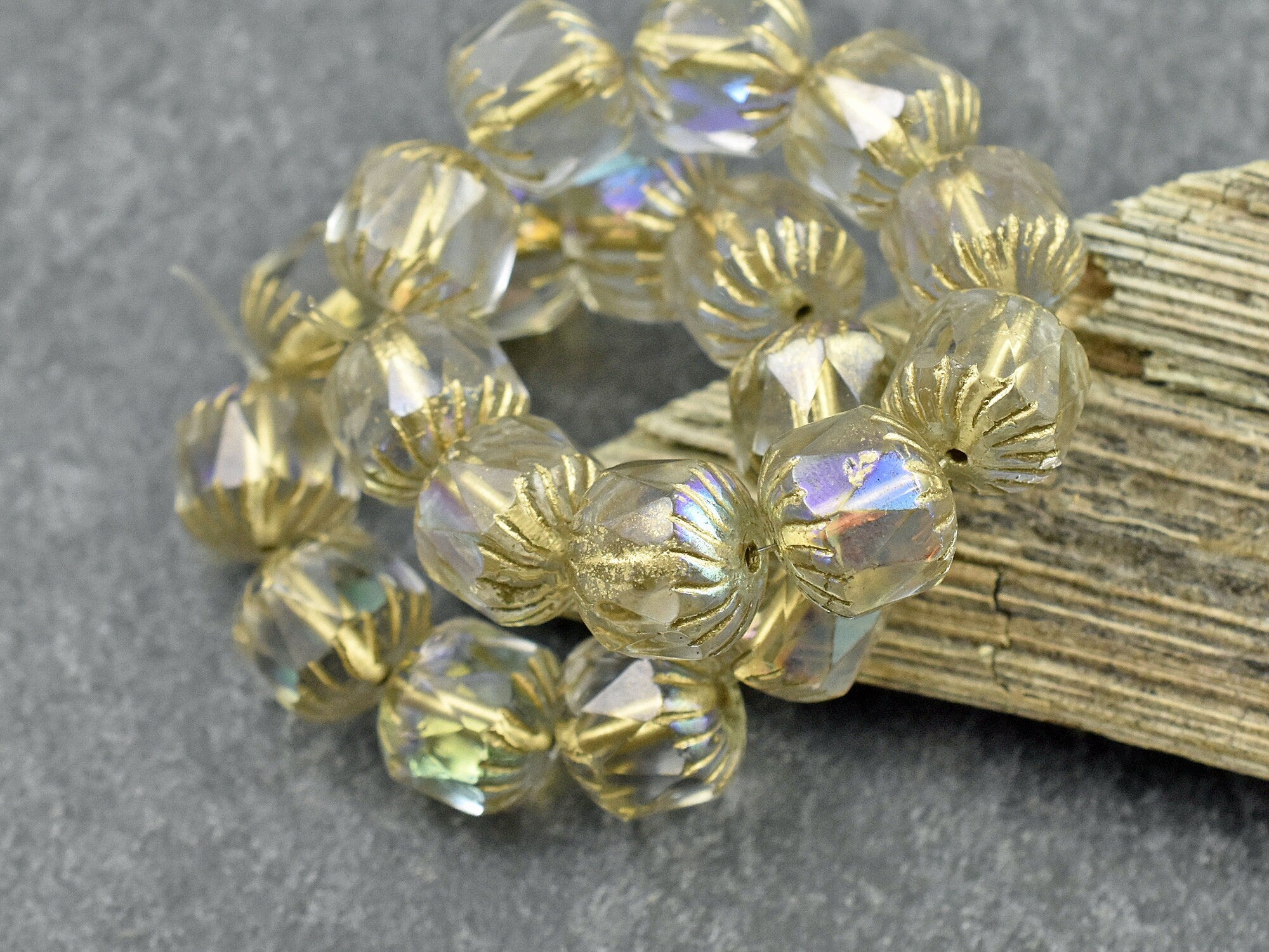 *10* 10mm Gold Washed Crystal AB Center Cut Cruller Beads