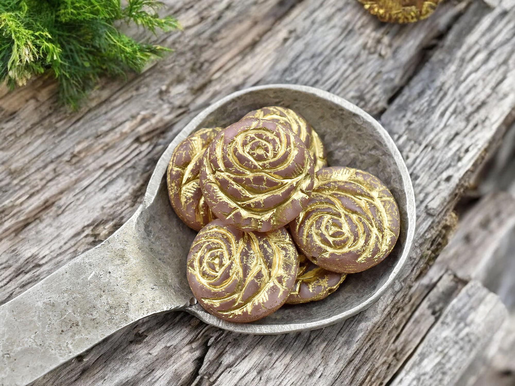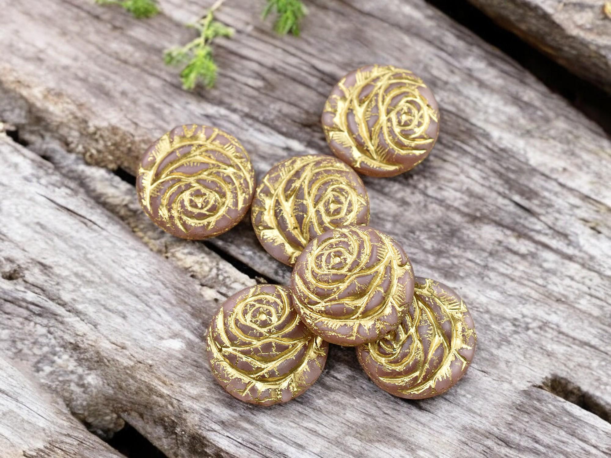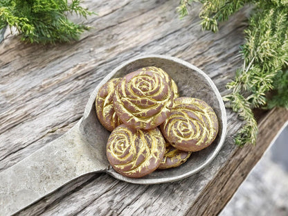 *6* 18mm Bronze Washed Vintage Pink Silk Rose Flower Coin Beads