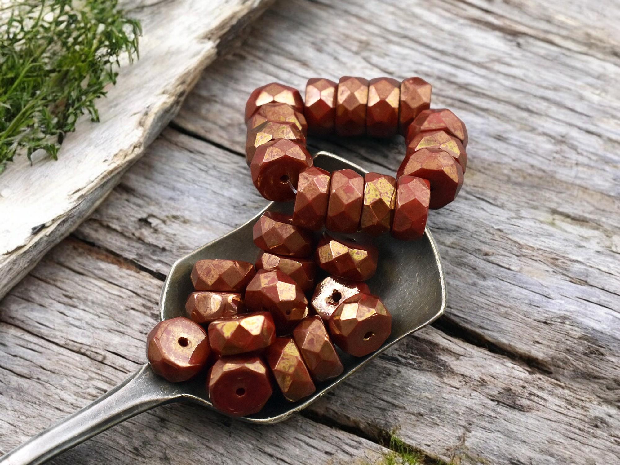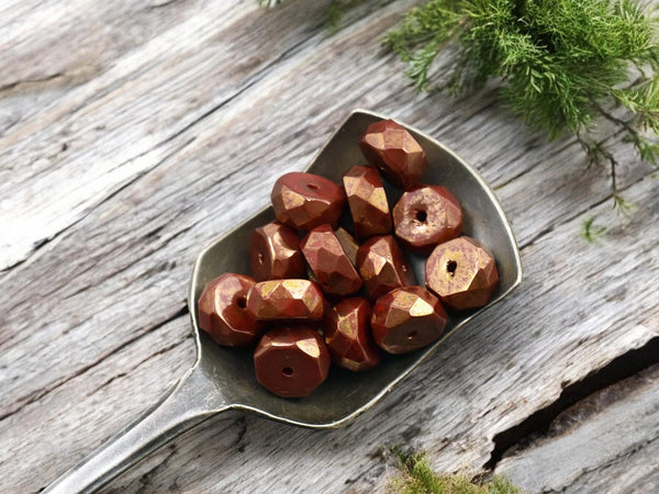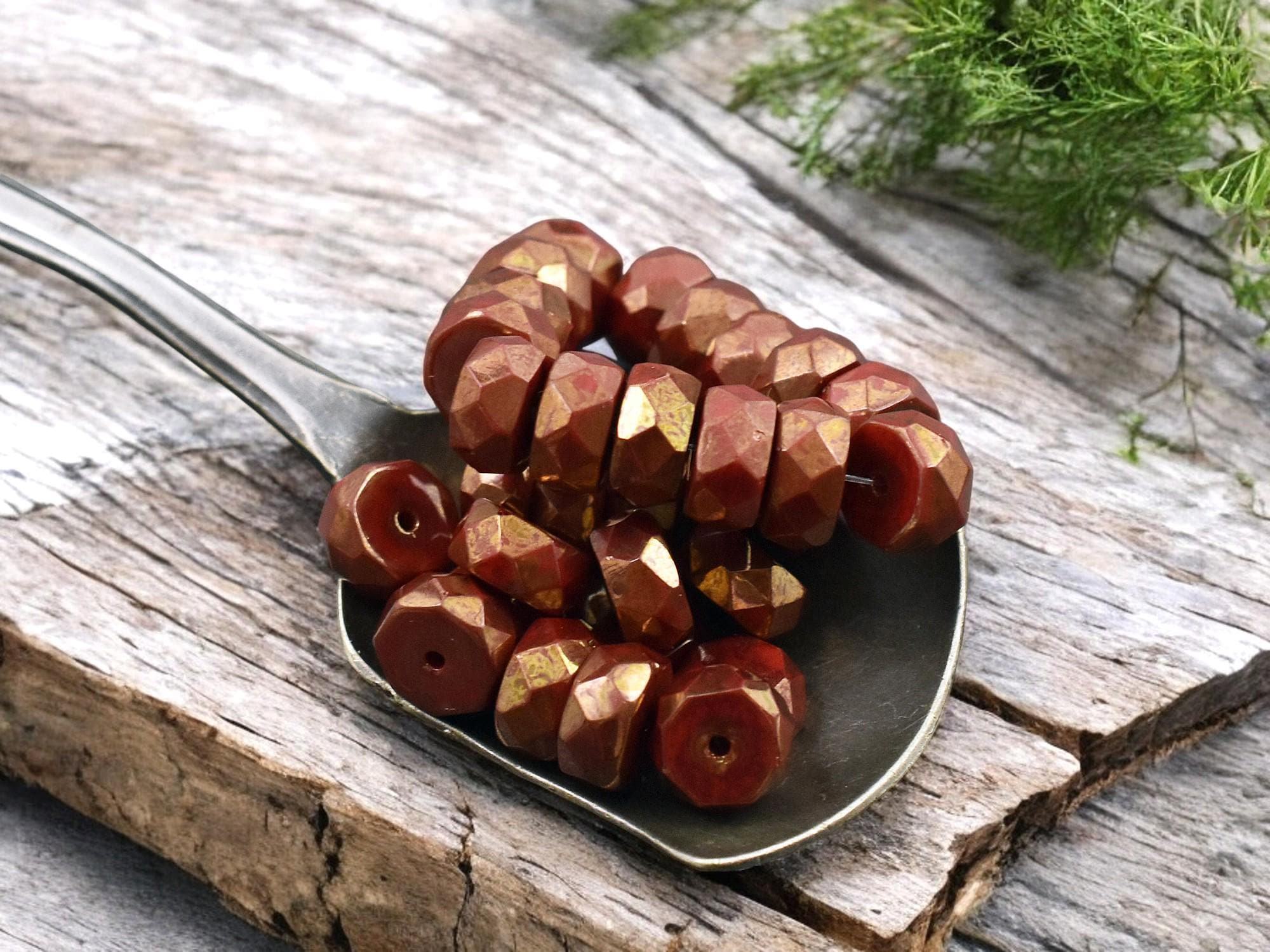 *15* 4x6mm Gold Lustered Ruby Red Fire Polished Rondelle Heishi Beads