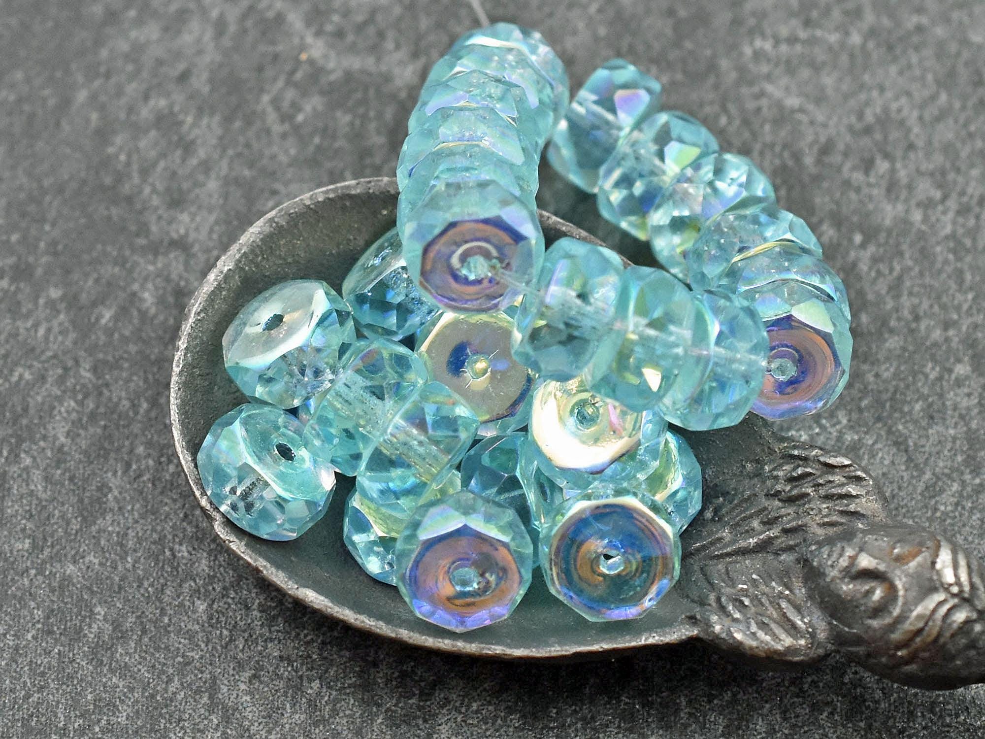 *15* 4x6mm Blue Aqua AB Fire Polished Rondelle Heishi Beads