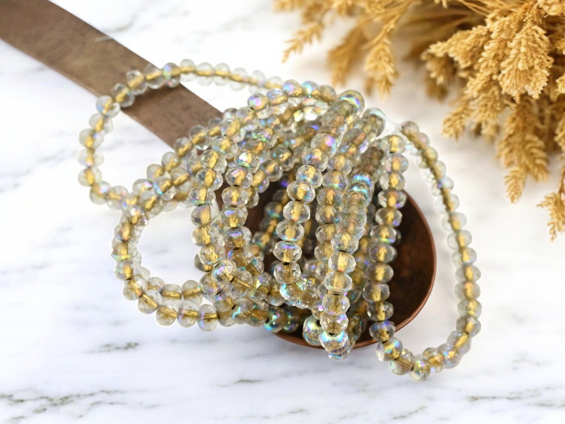 *30* 3x5mm Gold Lined Crystal AB Fire Polished Rondelle Beads