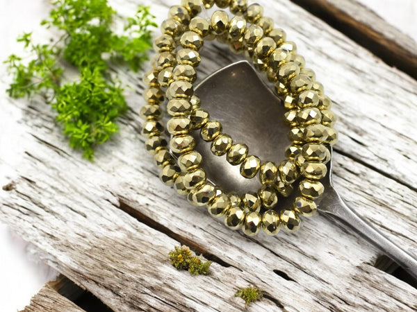 *30* 5x3mm Antique Gold Fire Polished Rondelle Beads