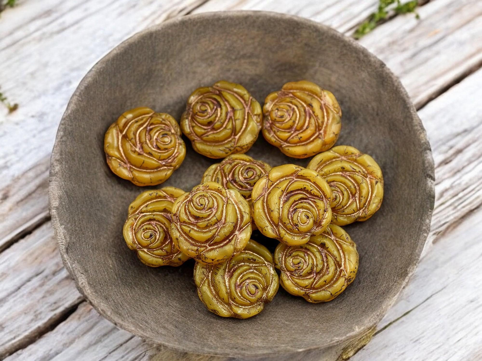*10* 14mm Dark Bronze Washed Goldenrod Opaline Rose Flower Beads