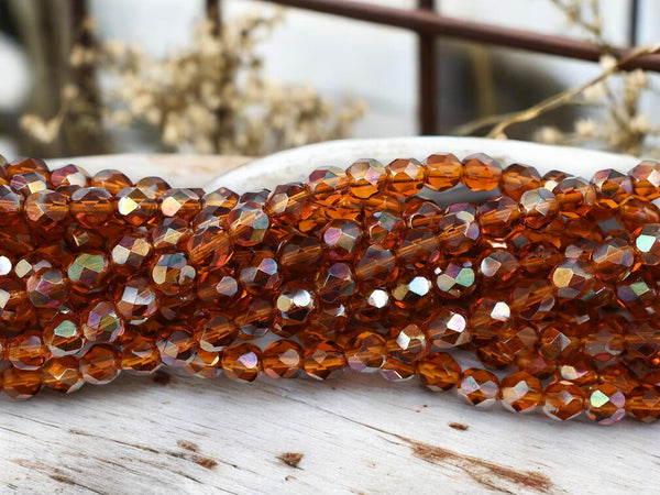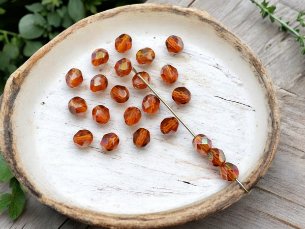*25* 6mm Topaz Celsian Fire Polished Round Beads
