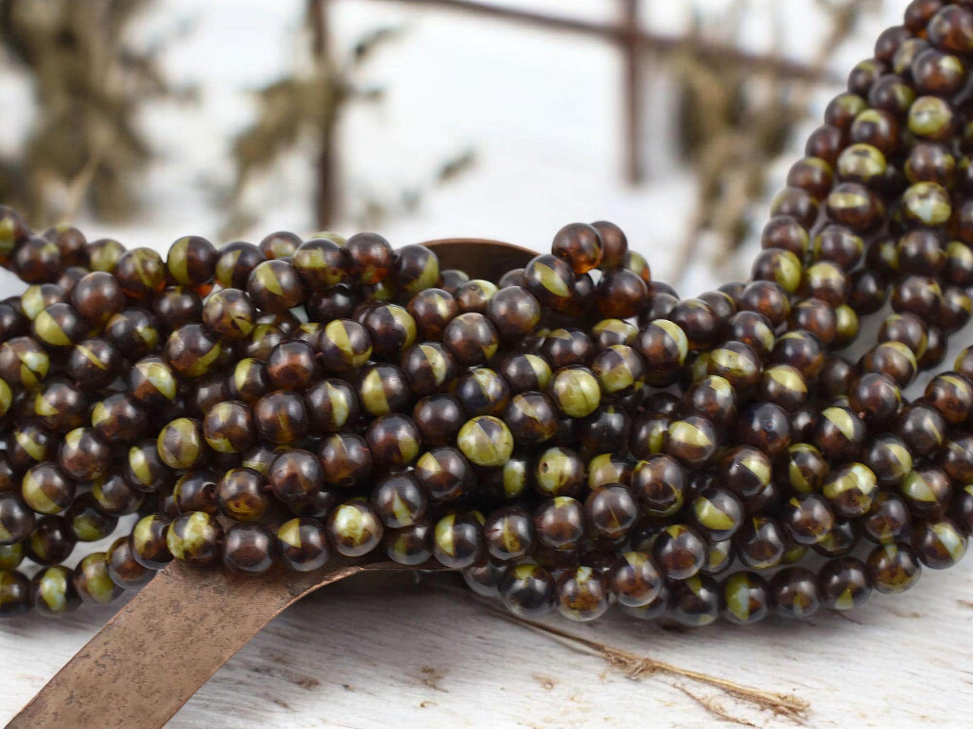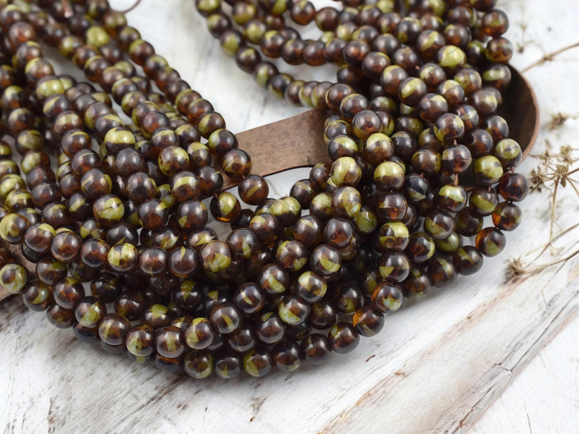 *50* 6mm Blended Topaz & Sage Green Round Druk Beads