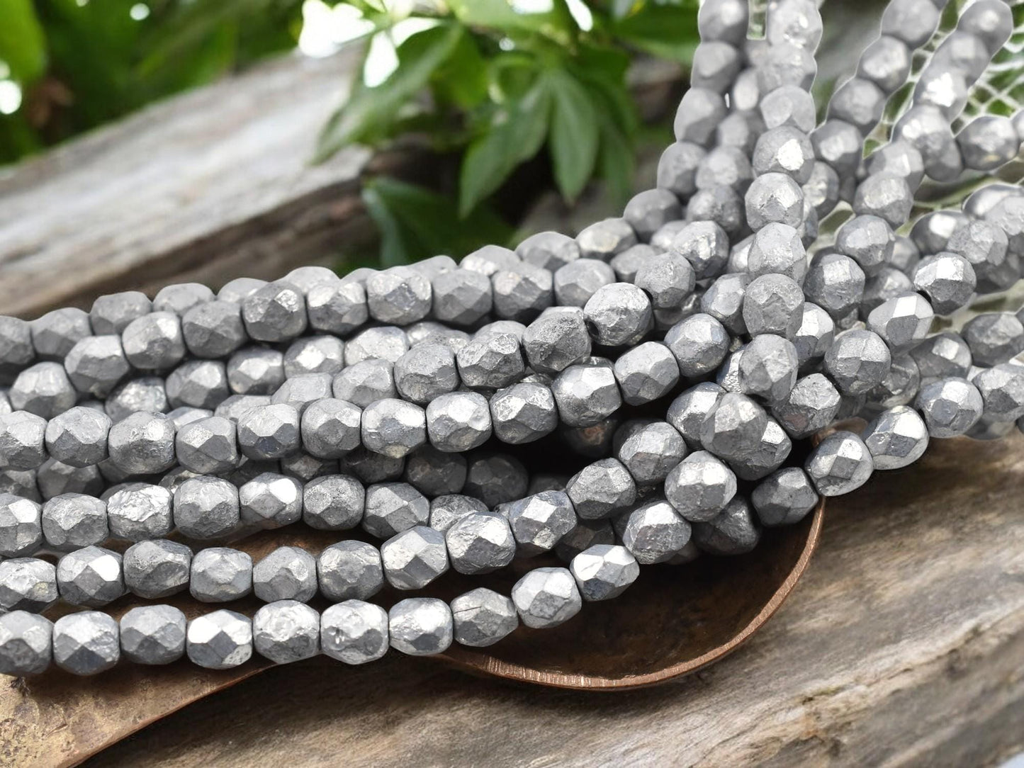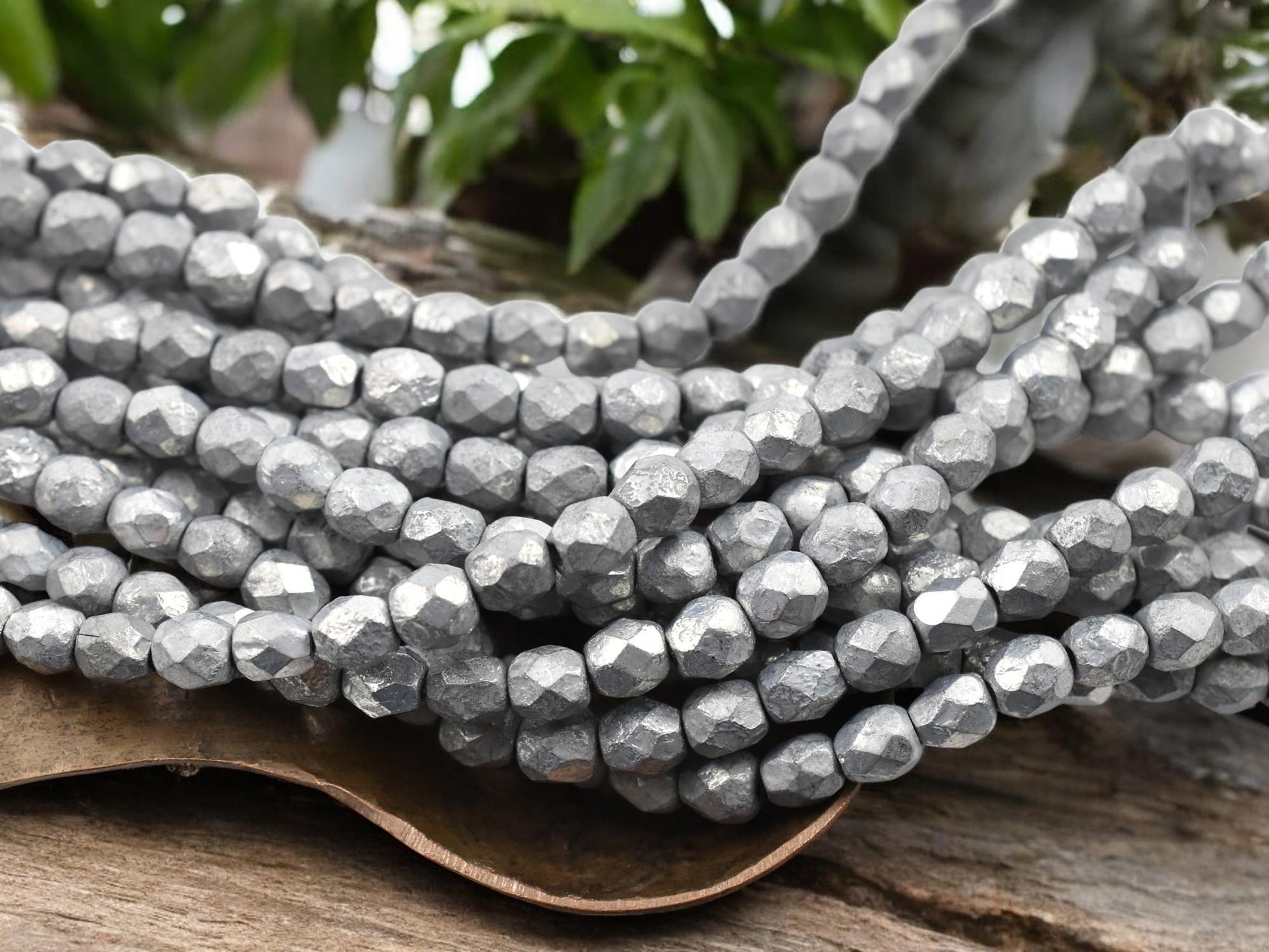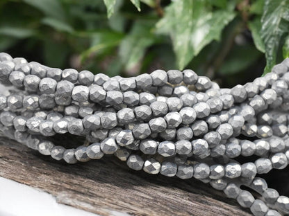 *25* 6mm Etched Grey Silver Fire Polished Round Beads