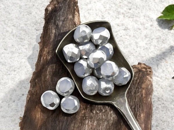*15* 8mm Silver Washed Crystal Opaline 2 Cut Fire Polished Round Beads
