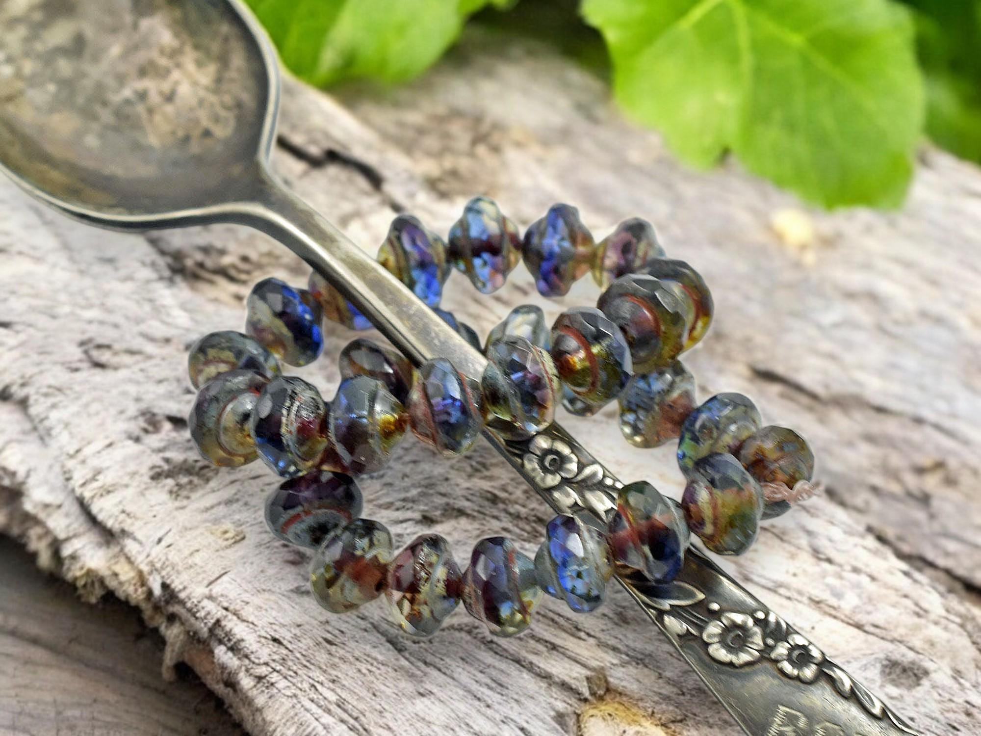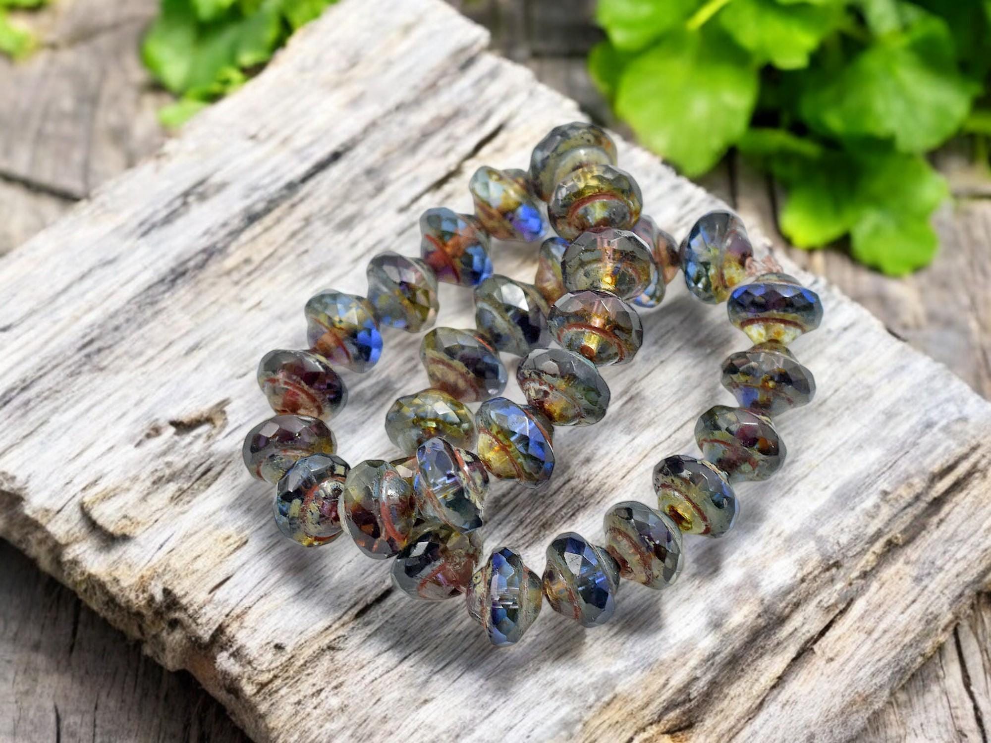 *15* 6x8mm Blended Sapphire Amethyst Picasso Saturn Beads