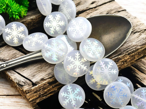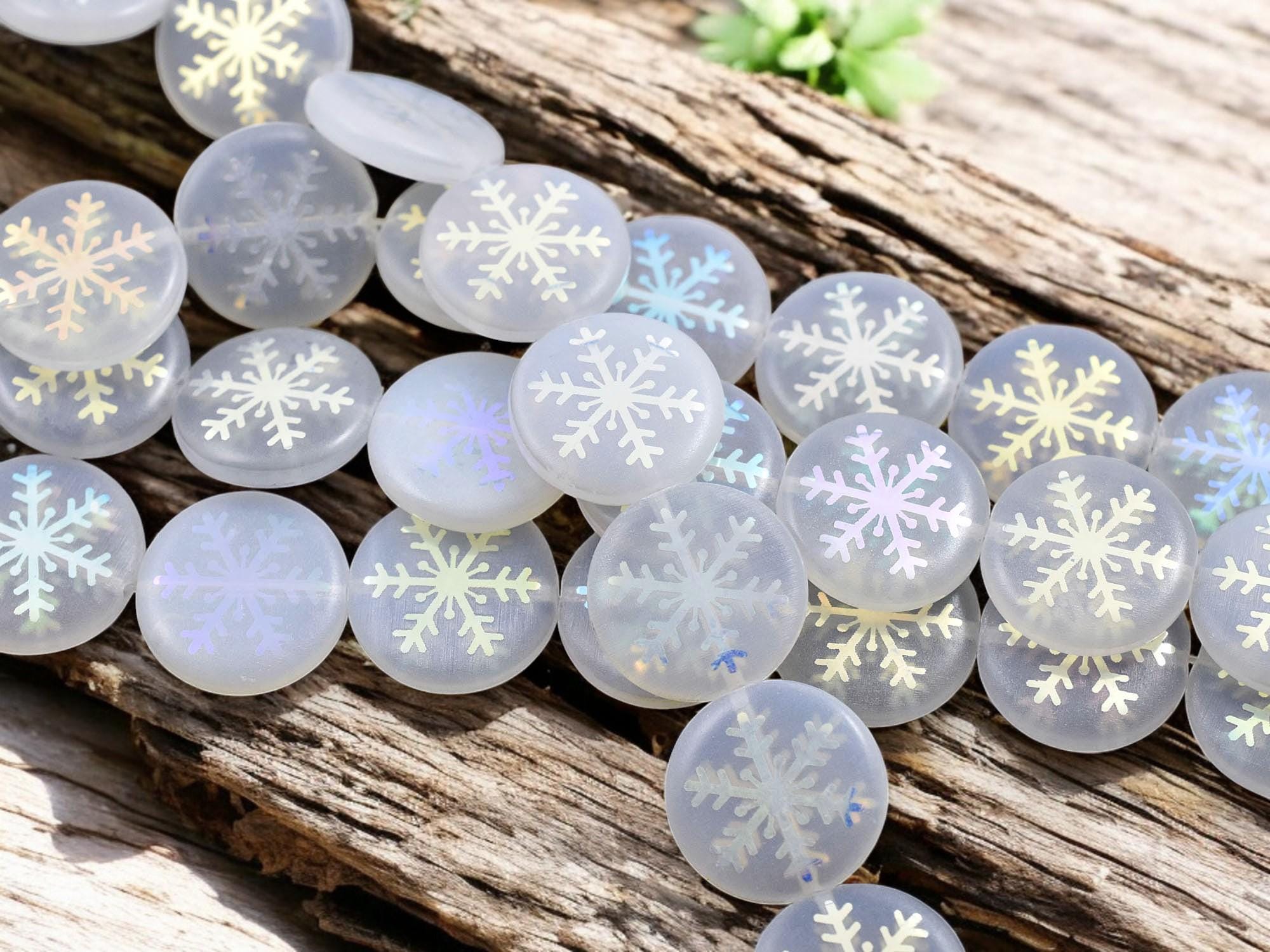 ♥ Type/Shape: Czech glass coin beads with laser etched snowflake design (both sides of bead)