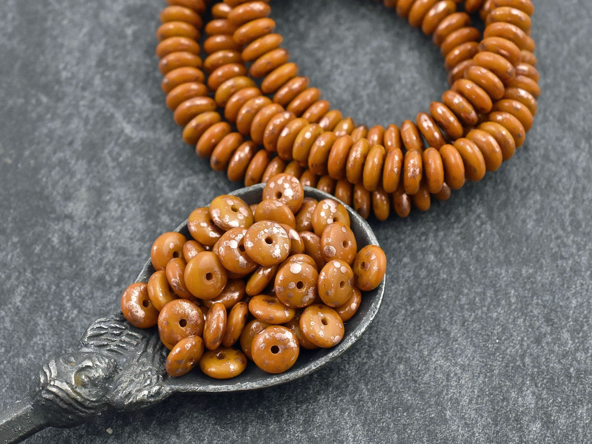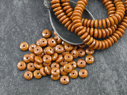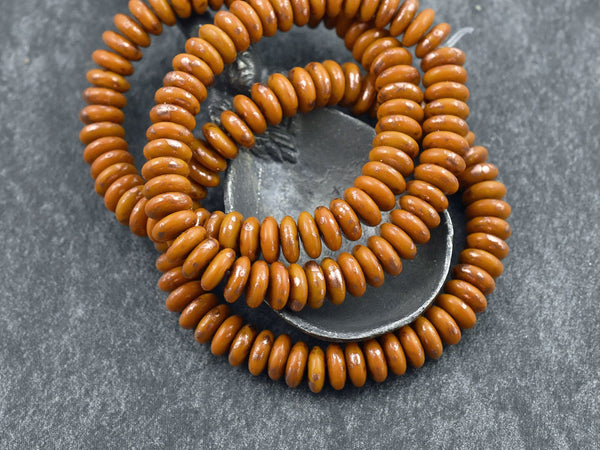 *50* 6mm Antique Copper Washed Opaque Ochre Orange Smooth Rondelle Beads