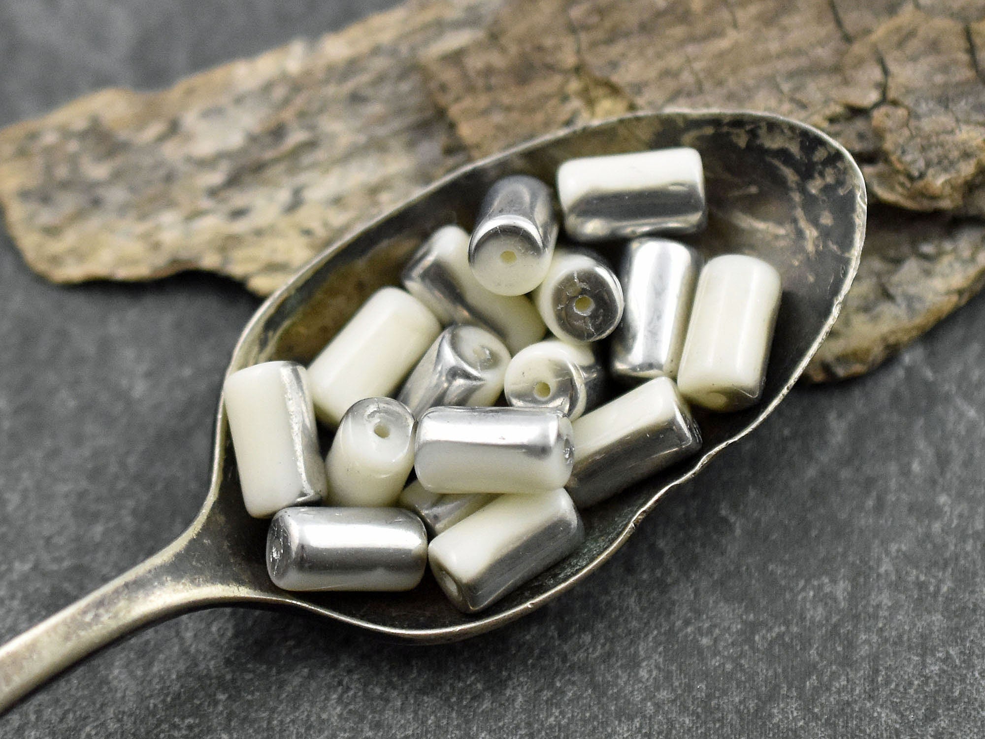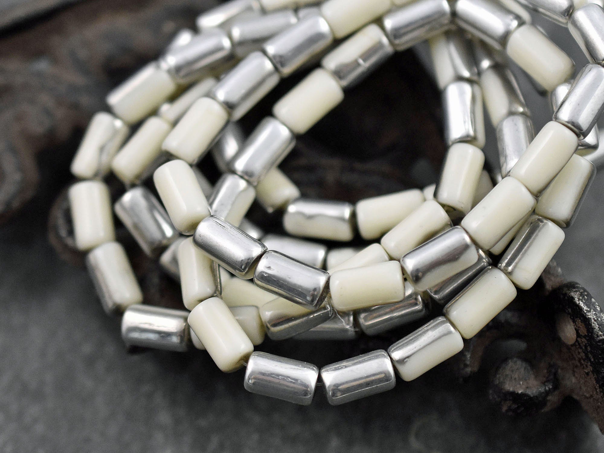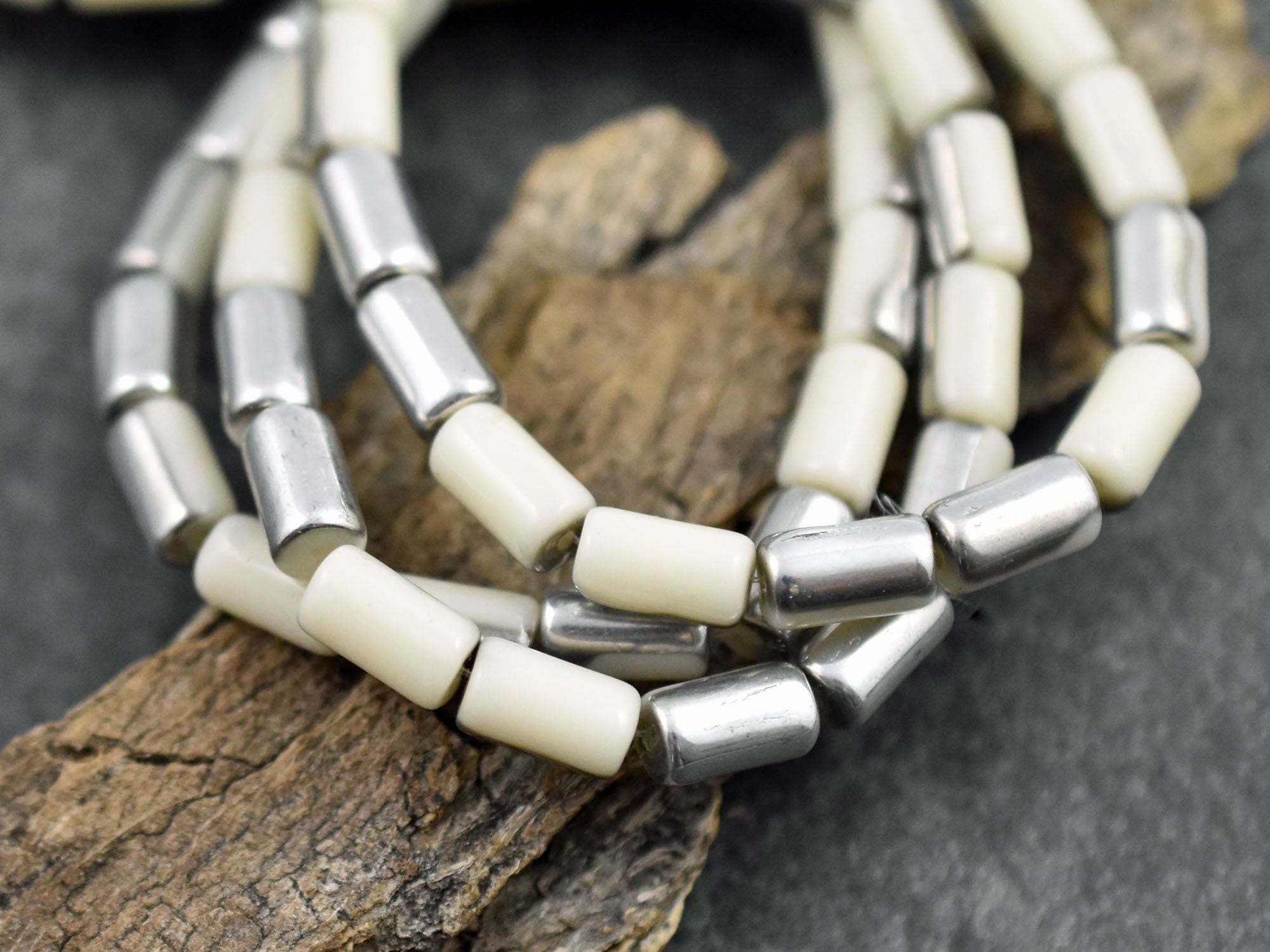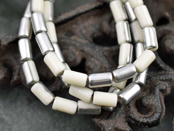*16* 9x5mm Silver Washed Opaque Ivory Tube Beads