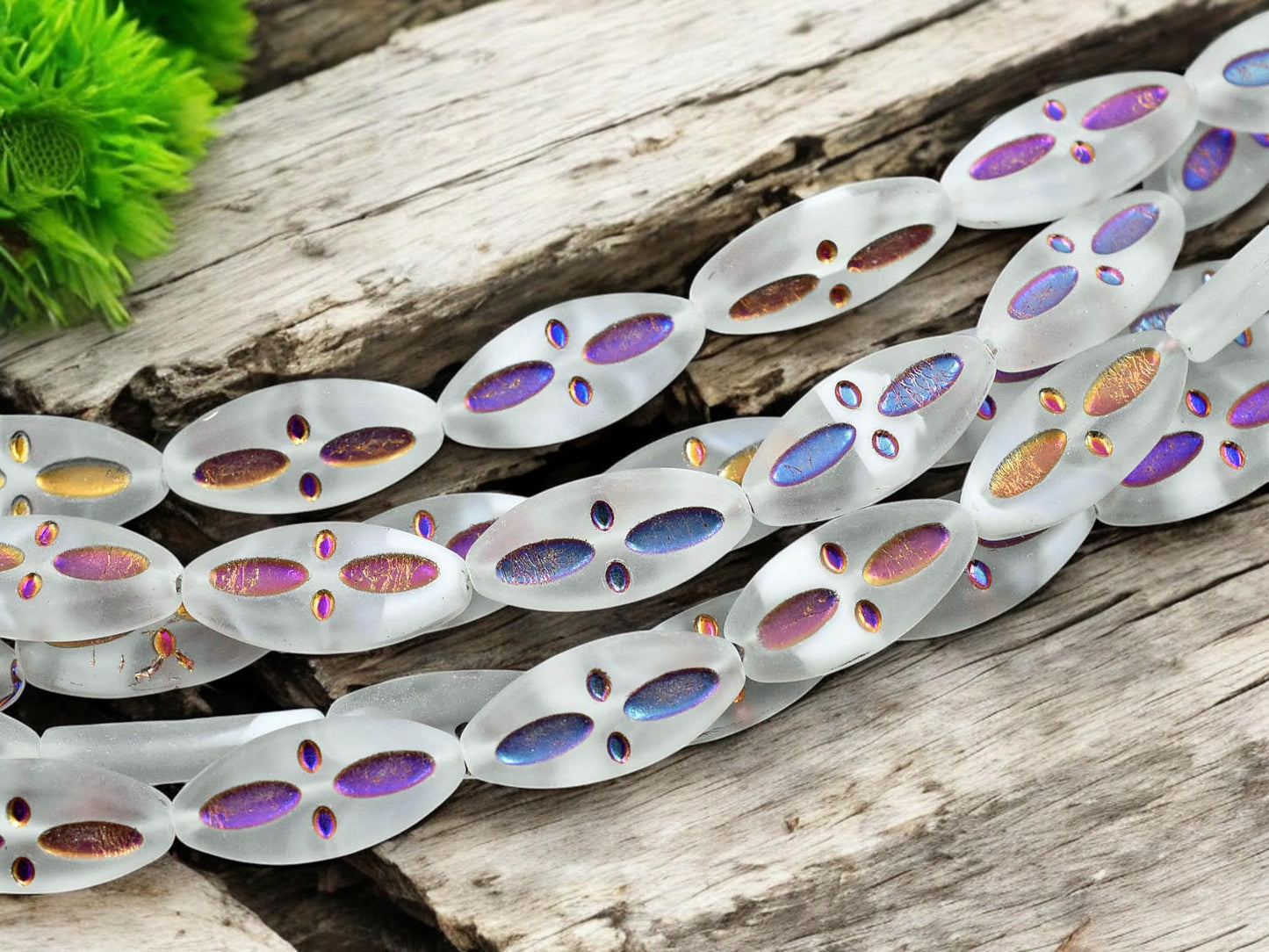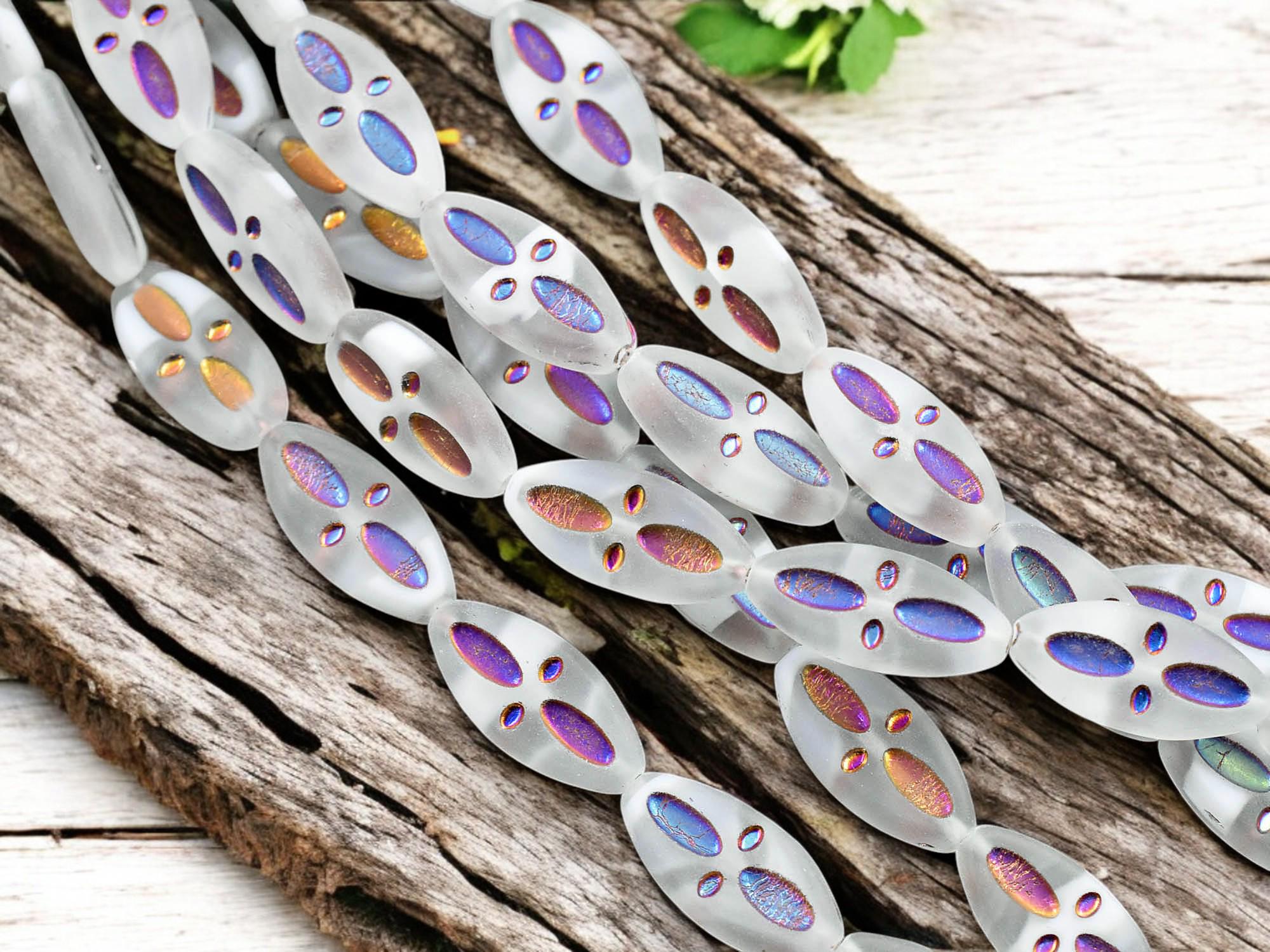 ♥ Type/Shape: Czech pressed glass marquise oval beads w/cross design