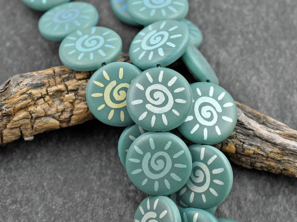 ♥ Type/Shape: Czech glass coin beads with laser etched sun design (both sides of bead)