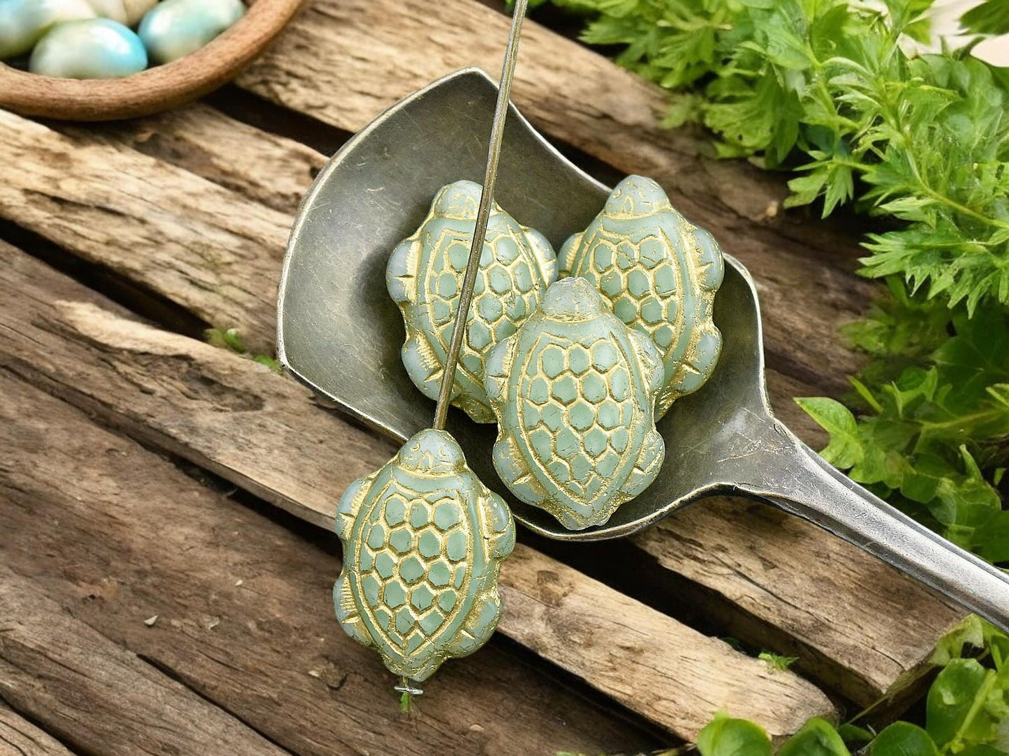 *4* 18x13mm Bronze Washed Matte Celadon Green Turtle Beads