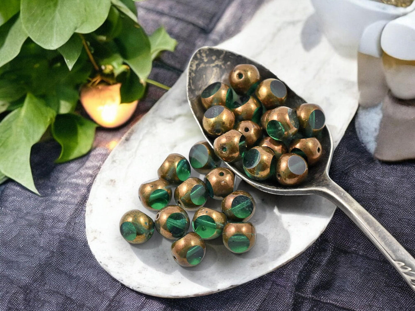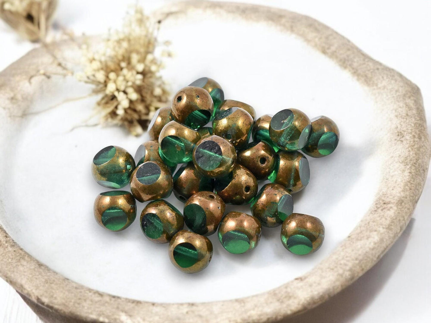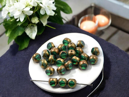*25* 8mm Bronze Washed Emerald Green Tri Cut Round Beads