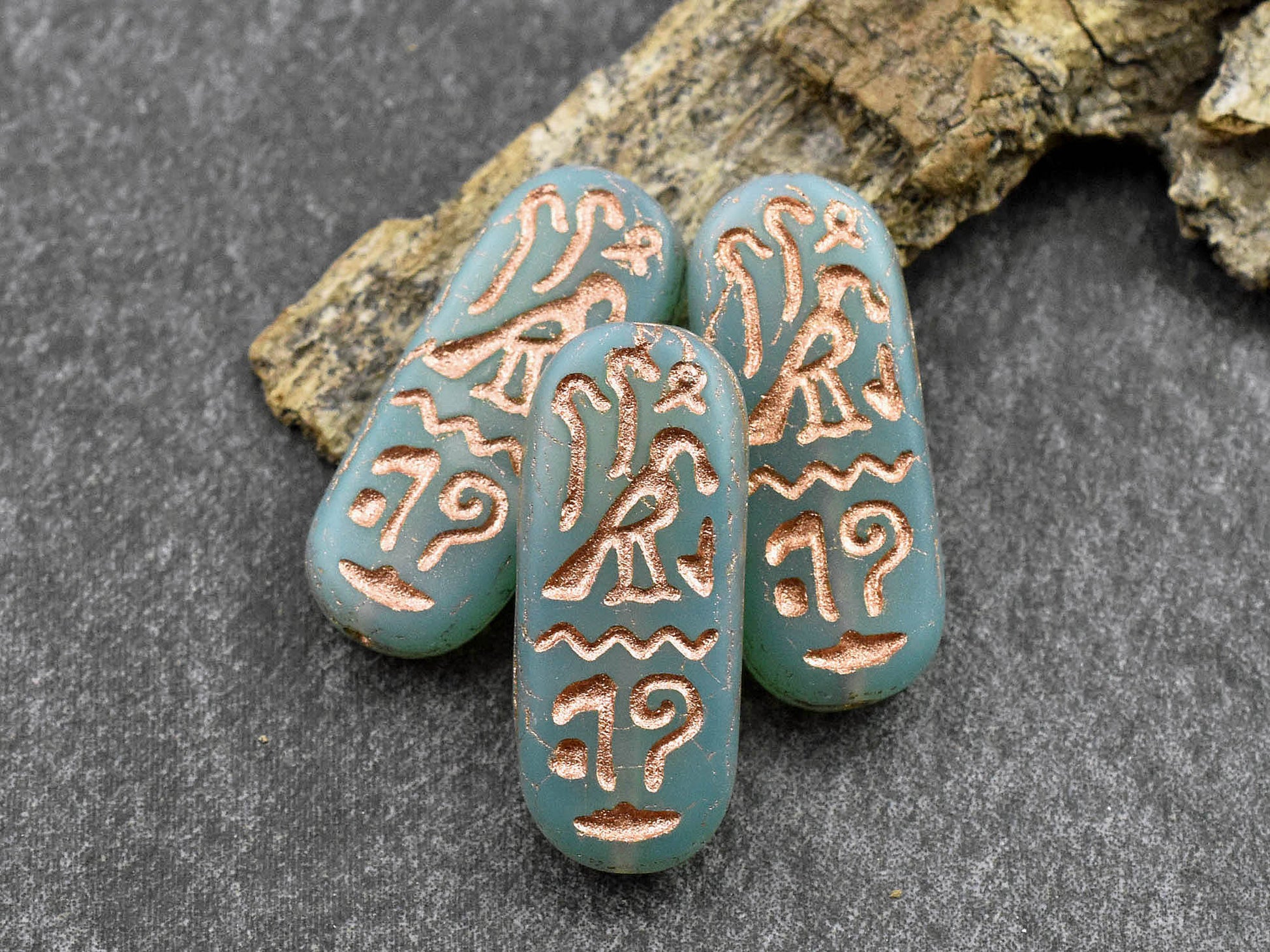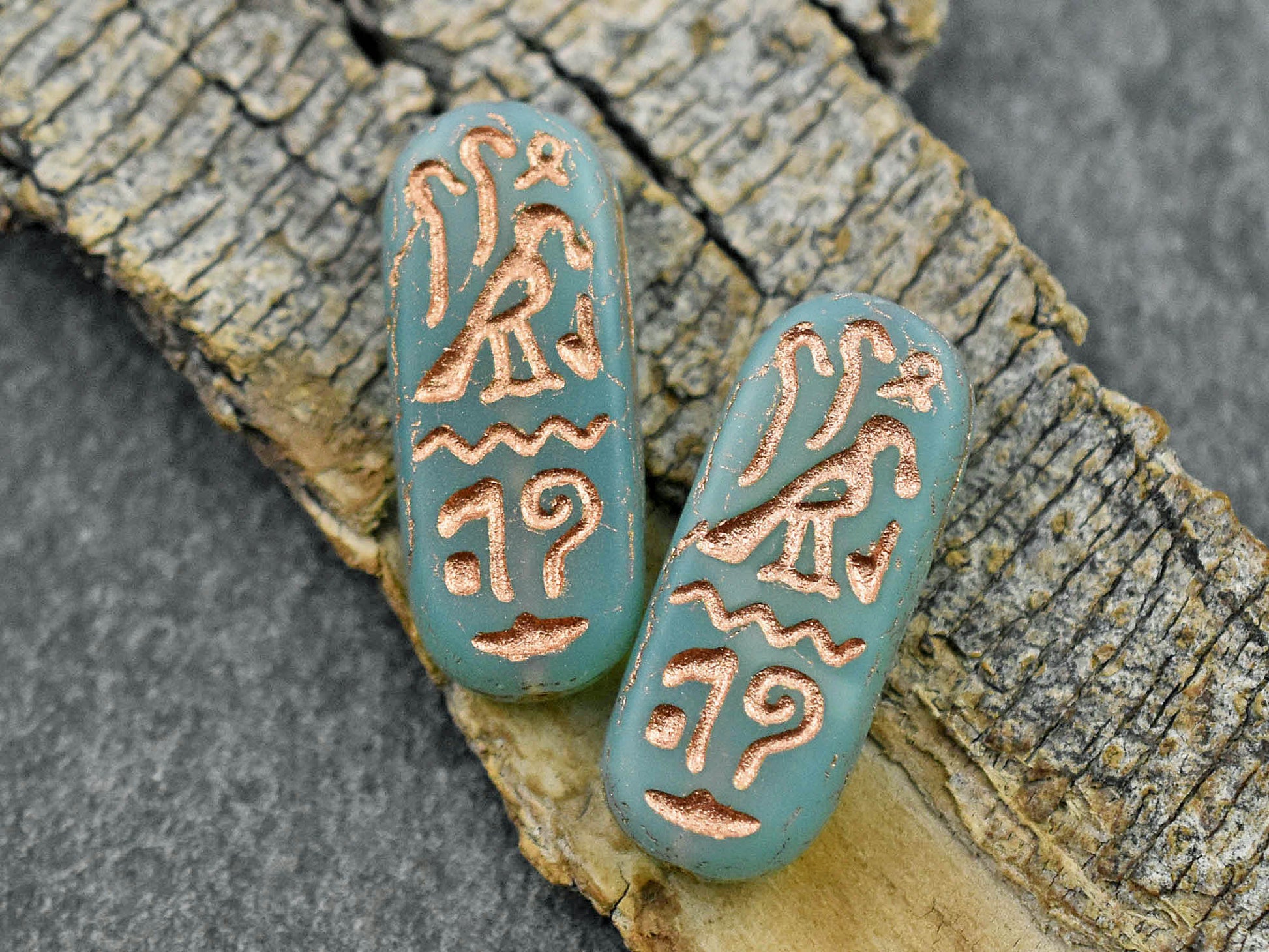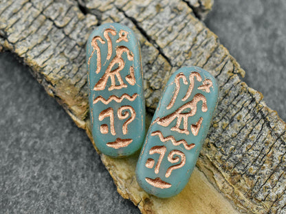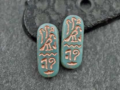 *6* 25x10mm Copper Washed Matte Aqua Opaline Egyptian Cartouche Oval Beads