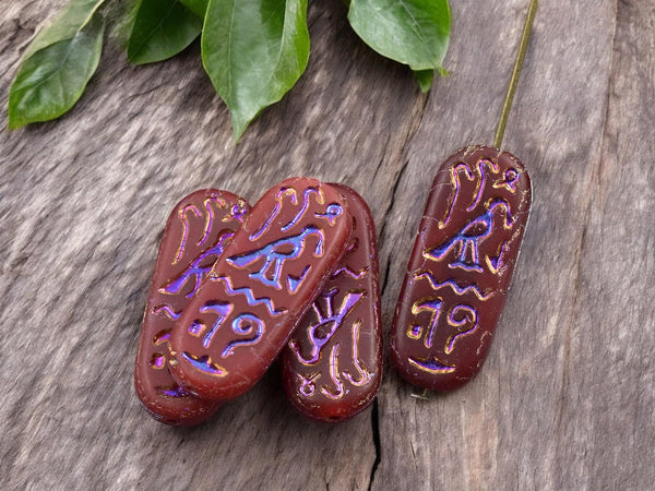 *6* 25x10mm Matte Red Opaline Rainbow Metallic Egyptian Cartouche Oval Beads