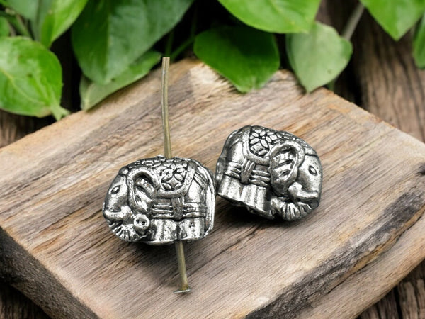 *10* 10x11x8mm Antique Silver Elephant Beads