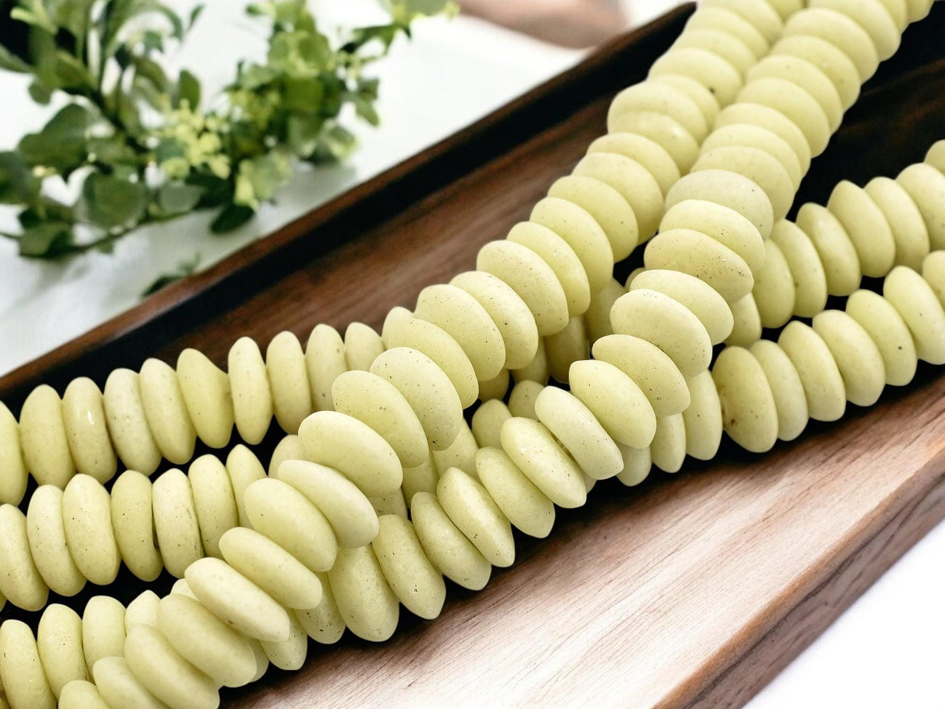 13~15mm Pale Yellow Recycled African Glass Heishi Beads