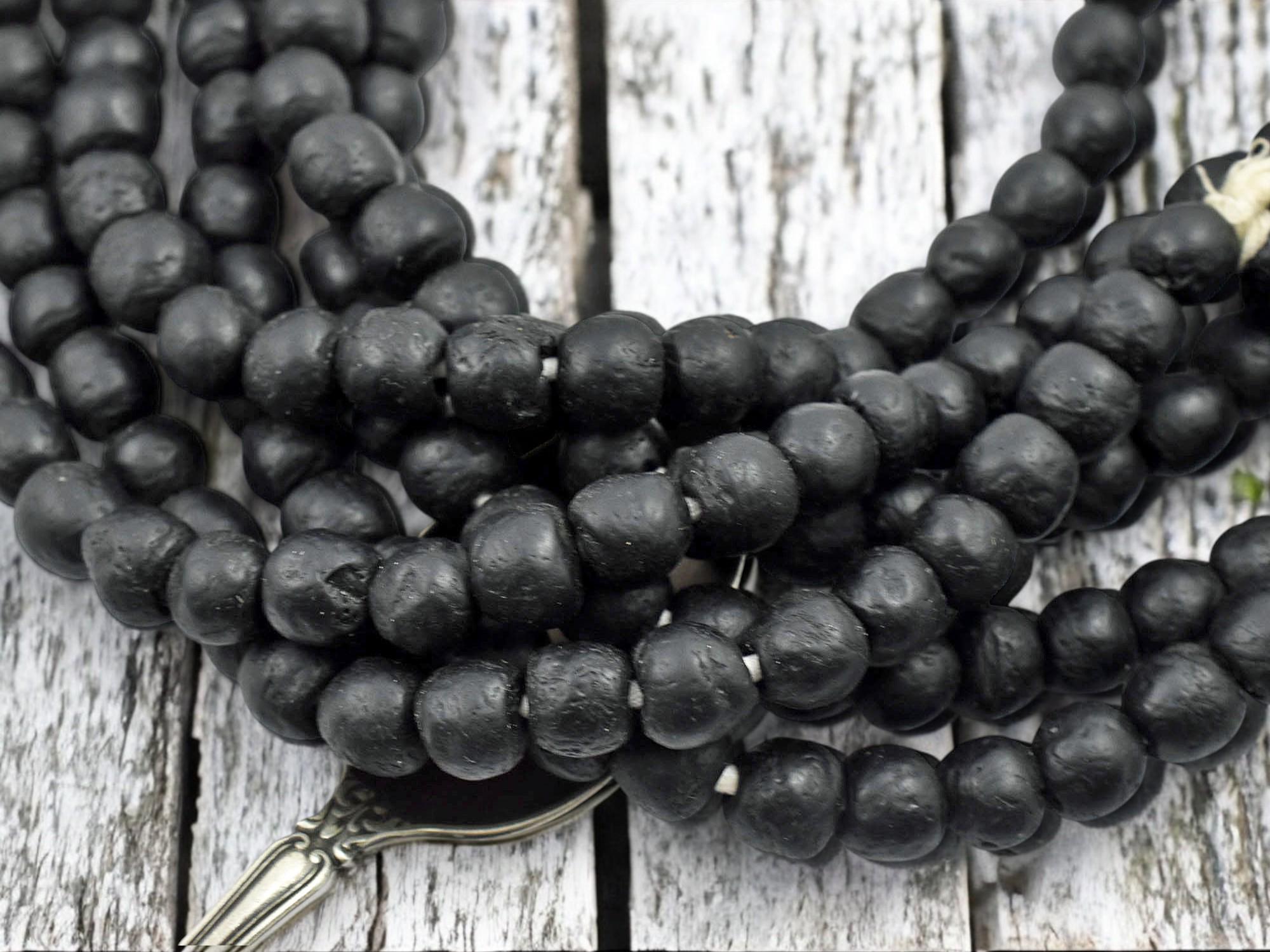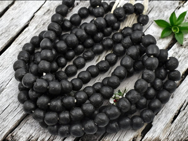 10-11mm Jet Black African Recycled Glass Beads (20" Strand)