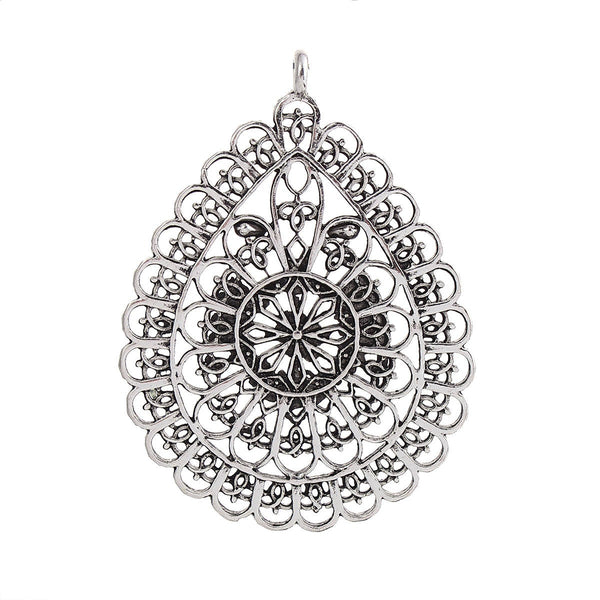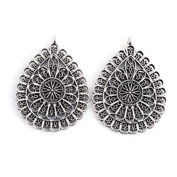 59x43mm Antique Silver Filigree Teardrop Pendants -- 3pcs