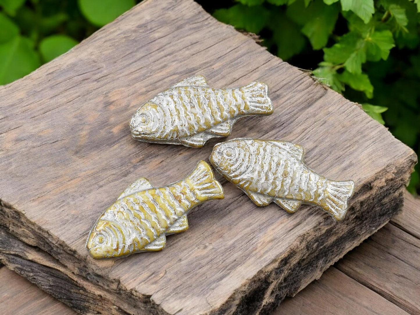 *8* 25x12mm Silver Washed Alabaster Champagne Fish Beads