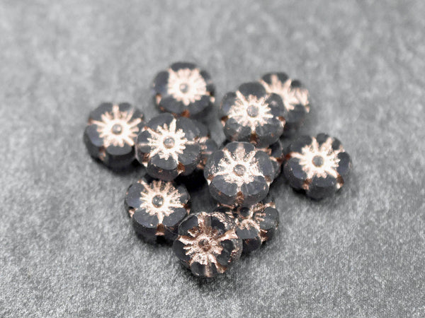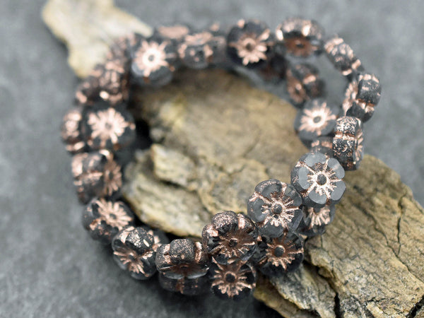 *16* 9mm Copper Washed Etched Gray Table Cut Hawaiian Flower Beads