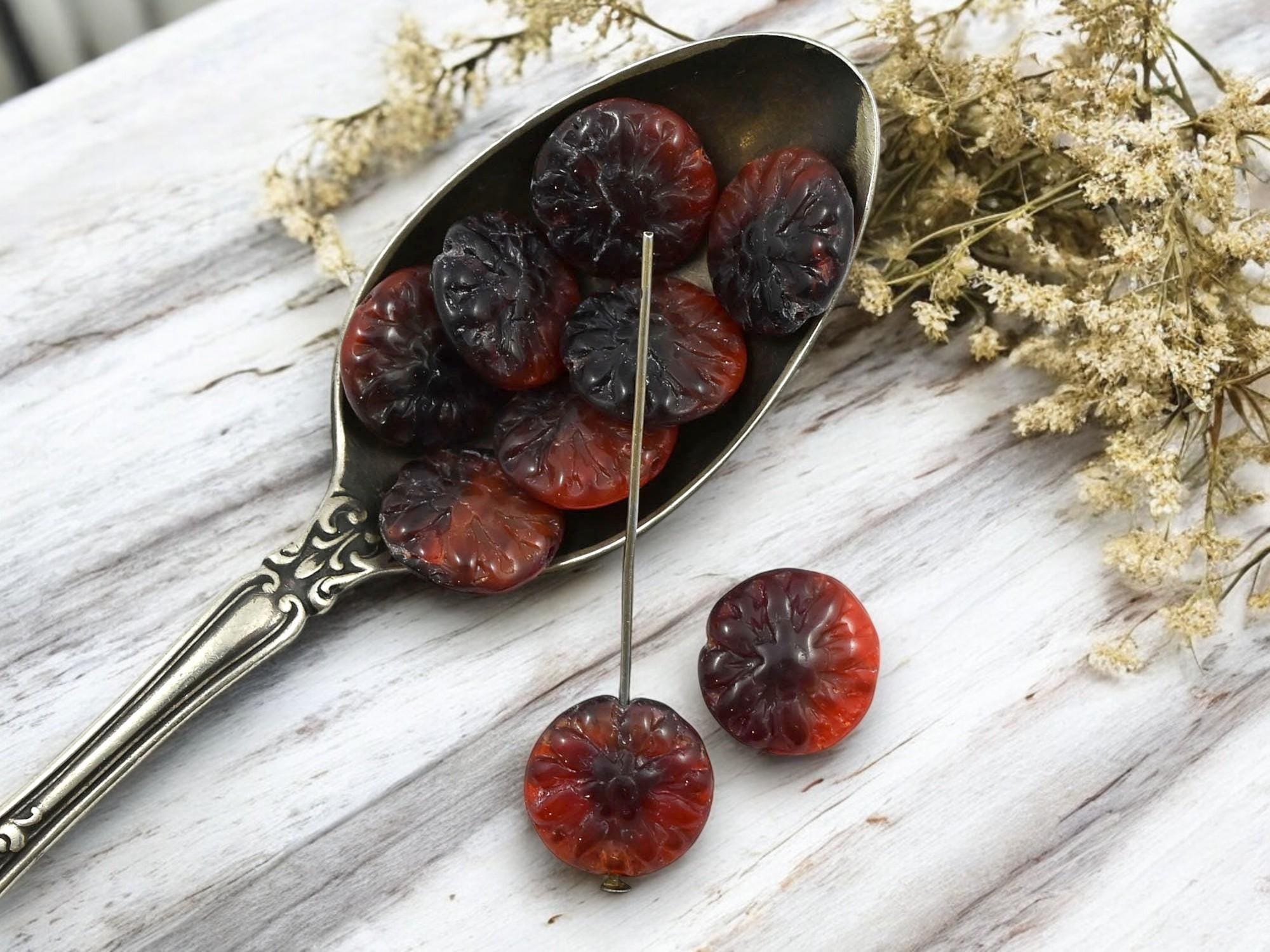 *10* 14mm Blended Red & Brown Dahlia Flower Coin Beads