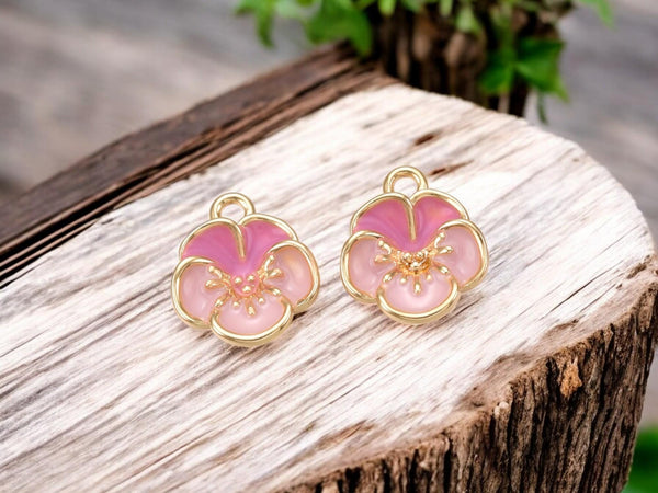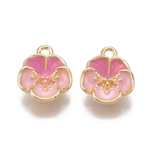 *10* 10mm 18k Gold Plated Pink Enamel Flower Charms
