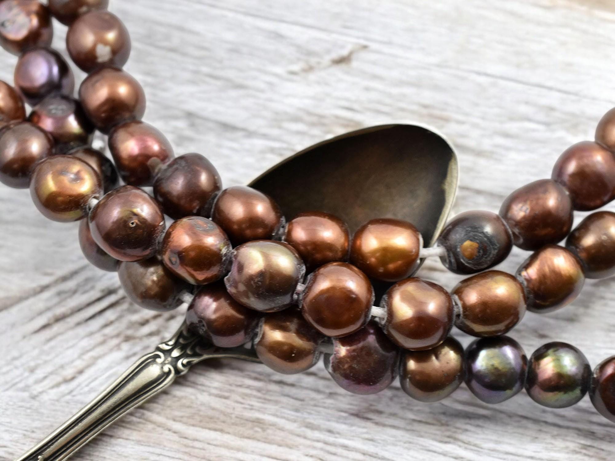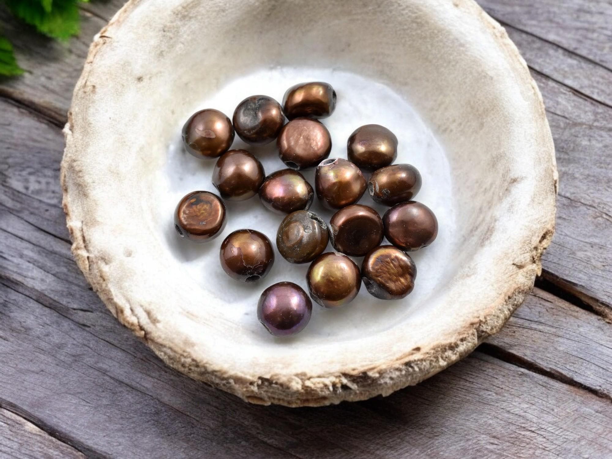 10-13mm Rusty Bronze Iris Large Hole Fresh Water Nugget Pearls (8" Strand)