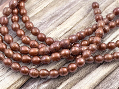 8-9mm Salmon Pink Large Hole Fresh Water Potato Pearls (8" Strand)