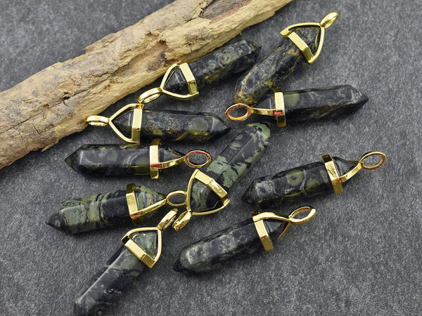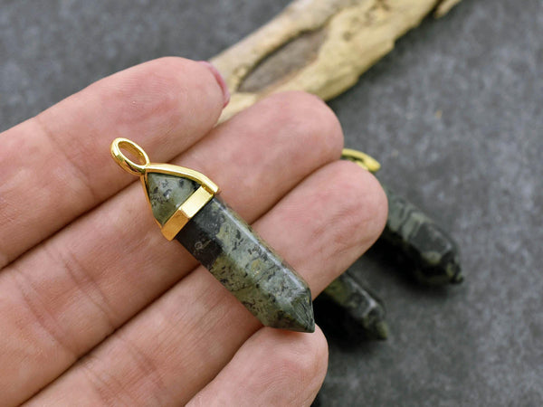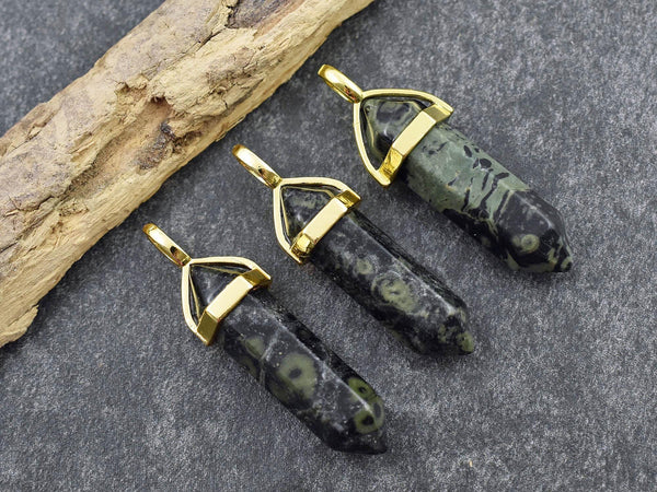 40mm Gold Tone Natural Kambaba Jasper Double Terminated Bullet Pendant