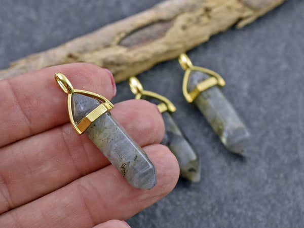 40mm Gold Tone Natural Labradorite Double Terminated Bullet Pendant