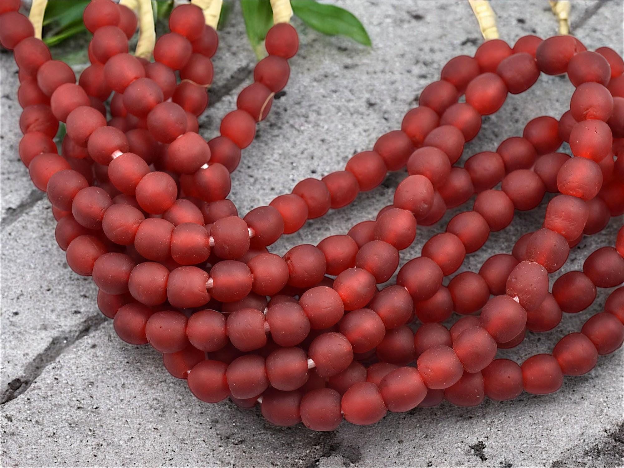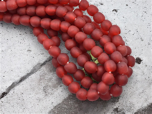 10-11mm Matte Red African Recycled Glass Beads (20" Strand)