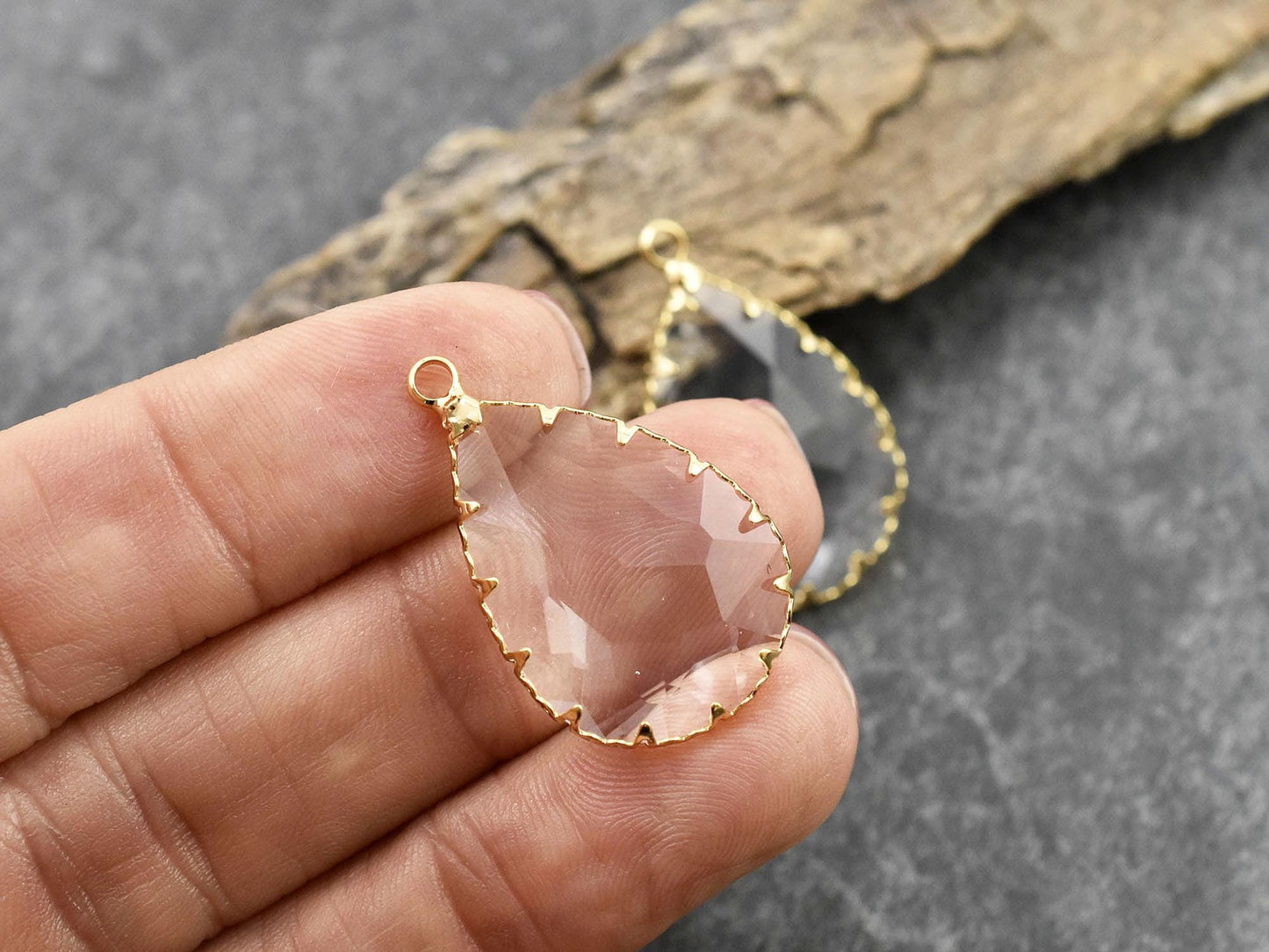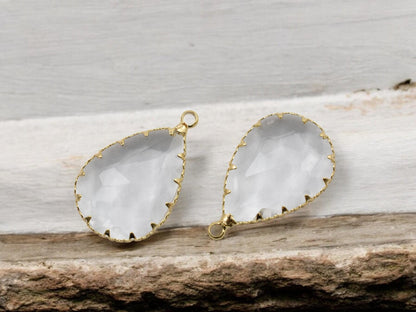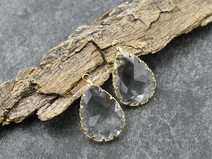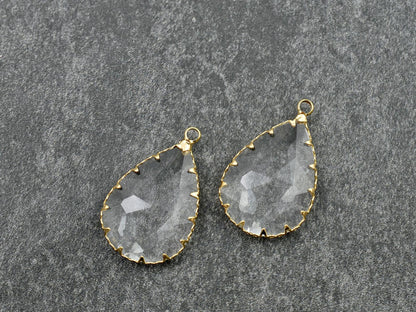 *2* 30x19mm 18k Gold Plated Brass Faceted Clear Glass Teardrop Pendants