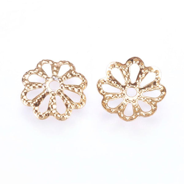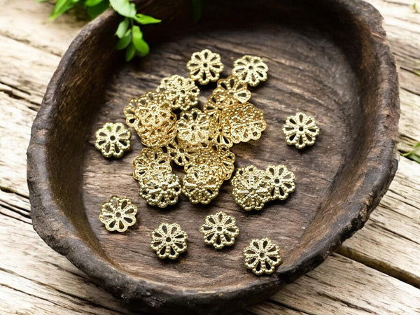 *50* 8mm 24k Gold Plated Brass Bead Caps