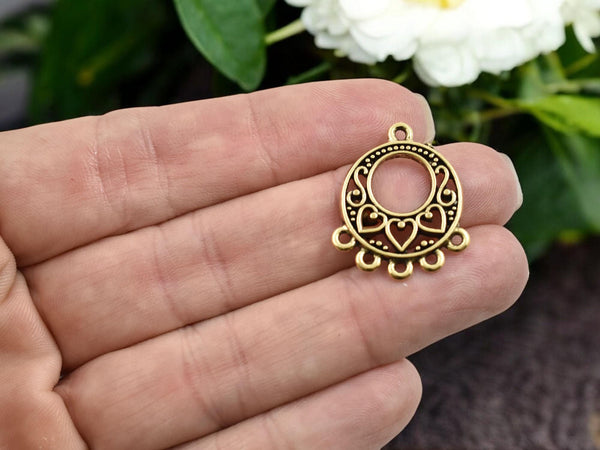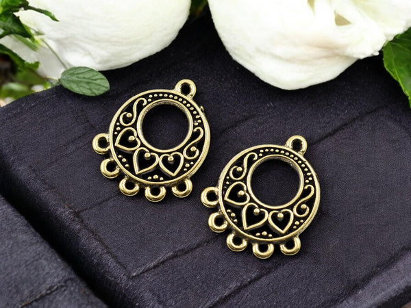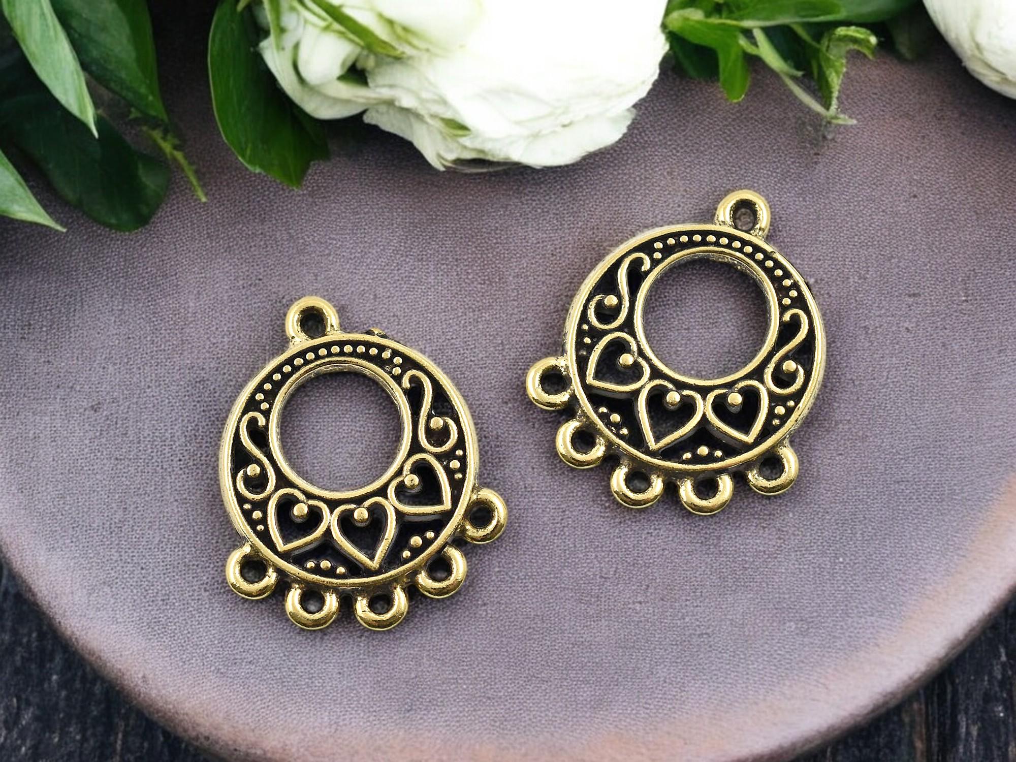 *2* 18x25mm Antique Gold 5 Strand Chandelier Earring Charms