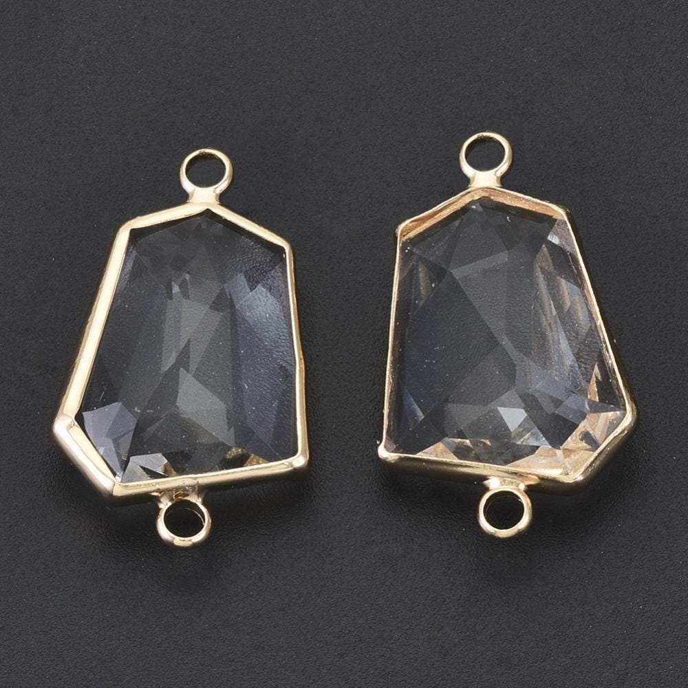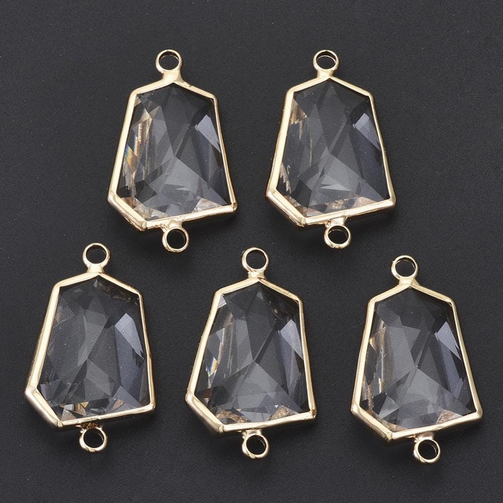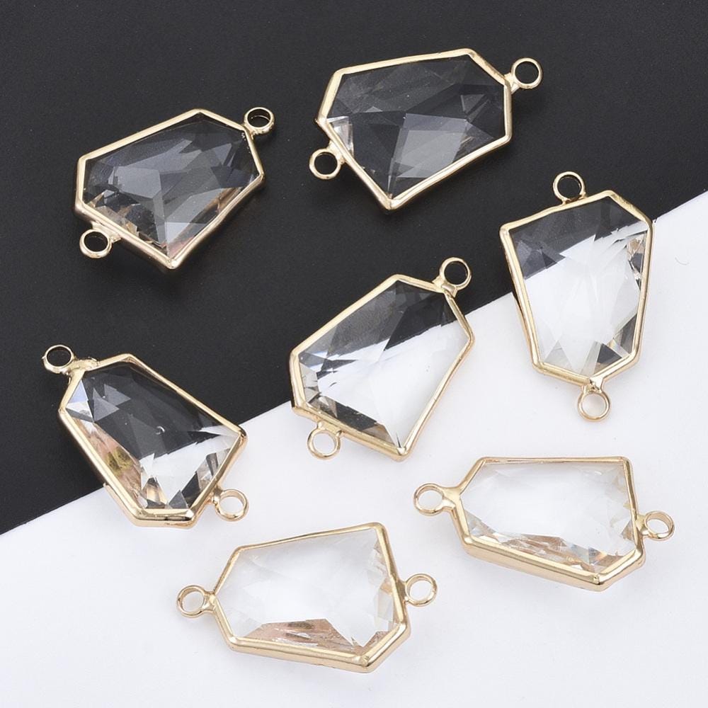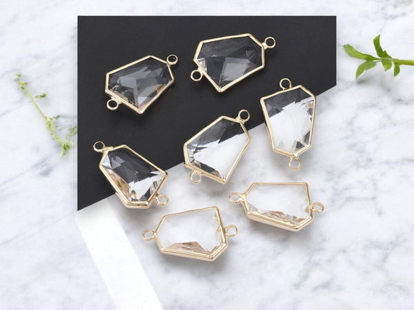 *6* 26x16x7mm Gold Plated Brass Surrounded Clear Faceted Glass Freeform Connectors