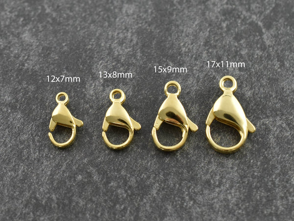 24k Gold Plated Stainless Steel Lobster Clasps -- Choose your size