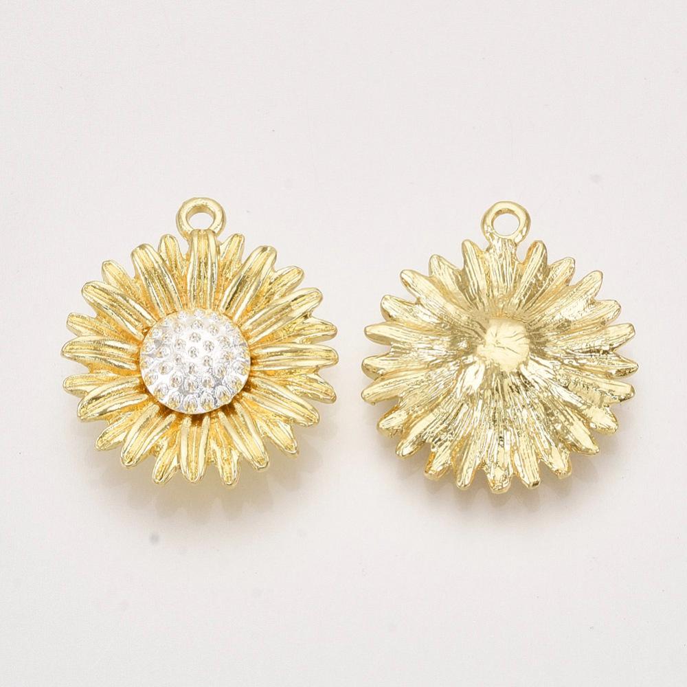 *5* 28x24mm Gold Plated Sunflower Pendant Charms